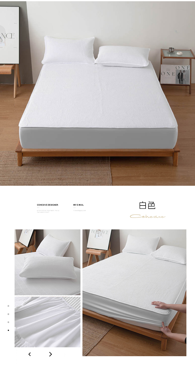 商品名称:宇淳国际 2026新款美人条A类水洗棉夹棉床笠三件套 白色