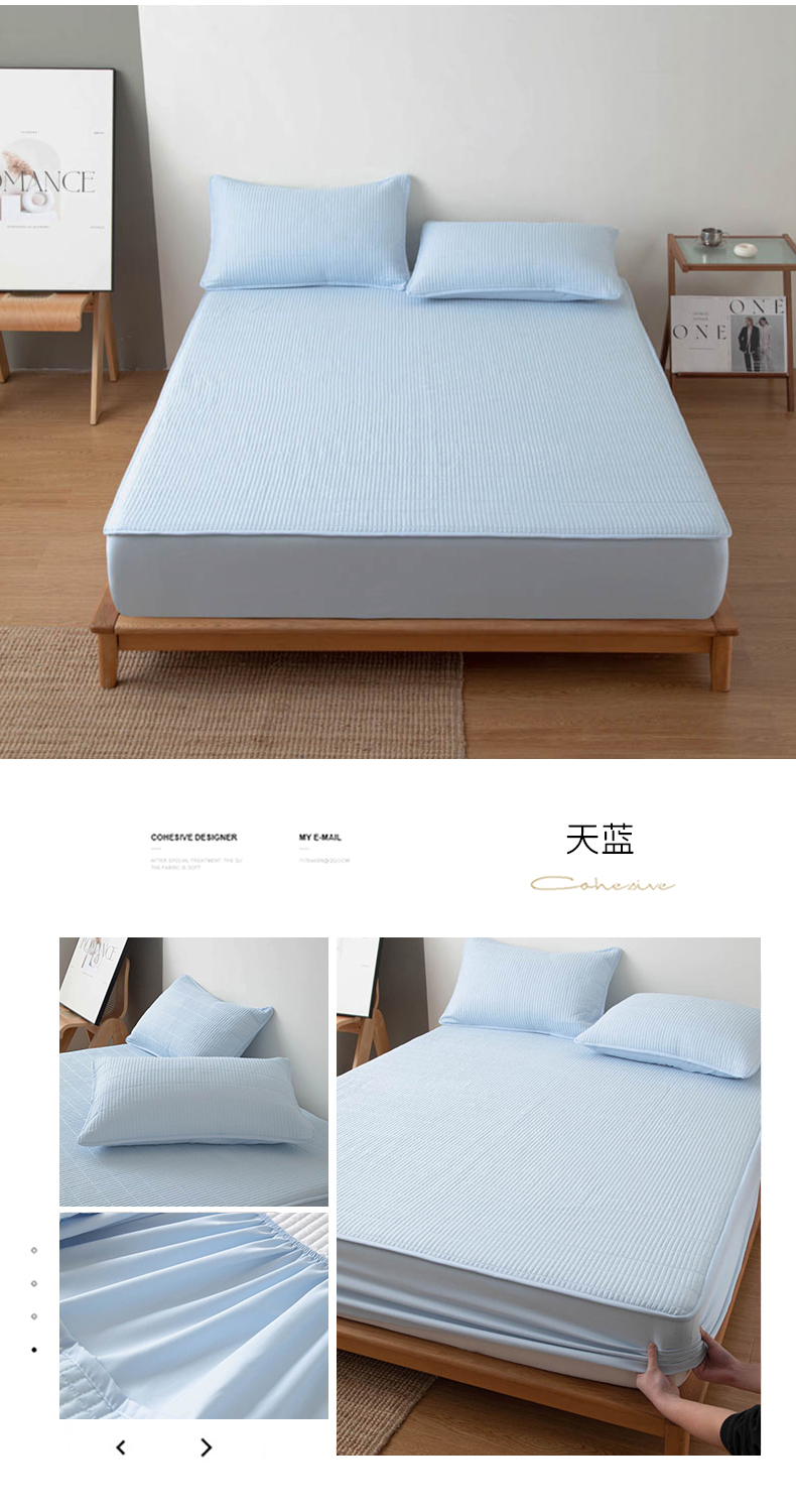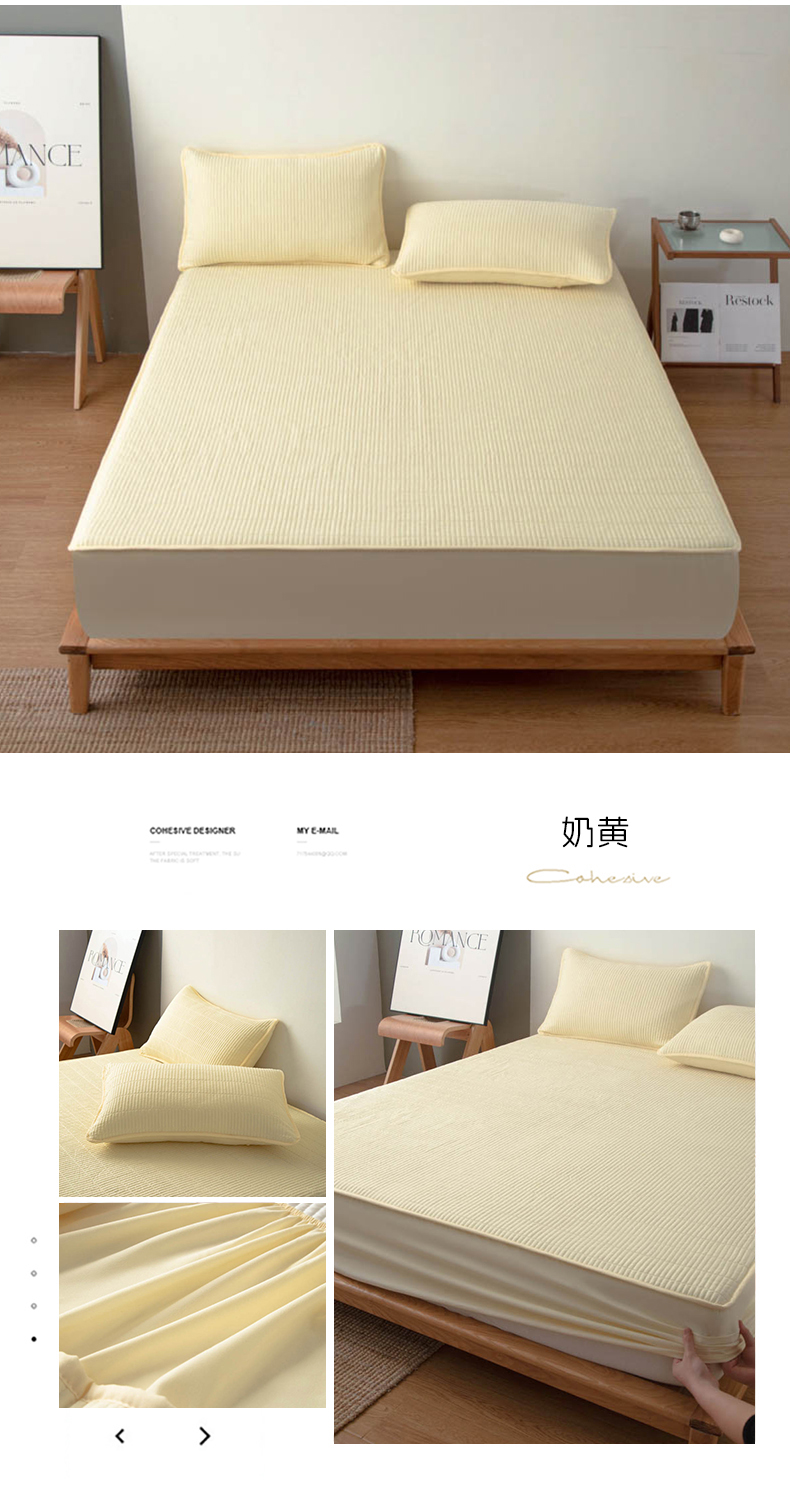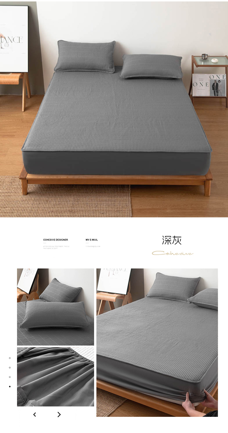(总)宇淳国际 2026新款美人条A类水洗棉夹棉床笠三件套,白色,卡其,奶黄,浅灰,深灰,天蓝