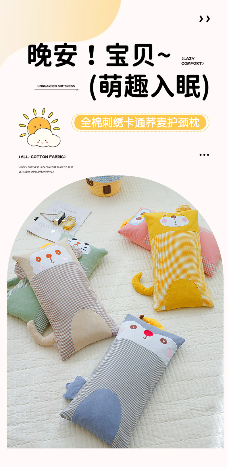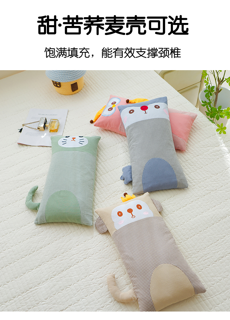 (总)蔻眠 2024新款可爱猫全棉儿童成人通用荞麦枕芯卡通枕头,粉色30x65cm,橘色30x65cm,咖色30x65cm,深蓝30x65cm,水绿30x65cm,天蓝30x65cm