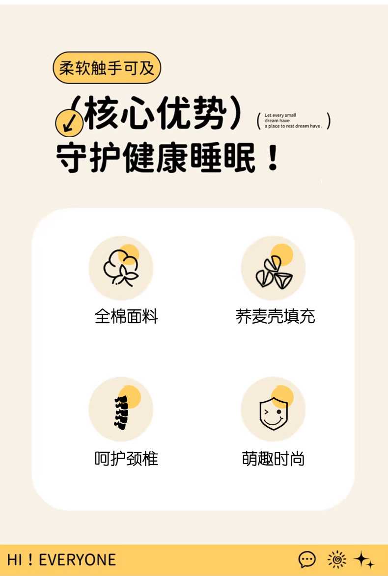 商品名称:蔻眠 全棉贴布绣卡通荞麦枕头儿童学生护颈椎枕芯 主图