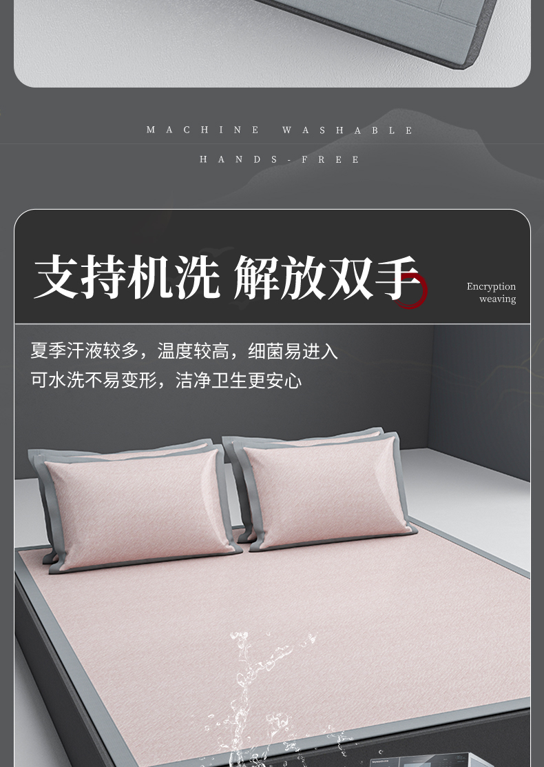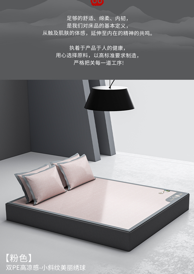 (总)2023新款超精密冰丝席-小斜纹系列-床笠款藤席凉席竹席,粉色,蓝色,绿色,银灰
