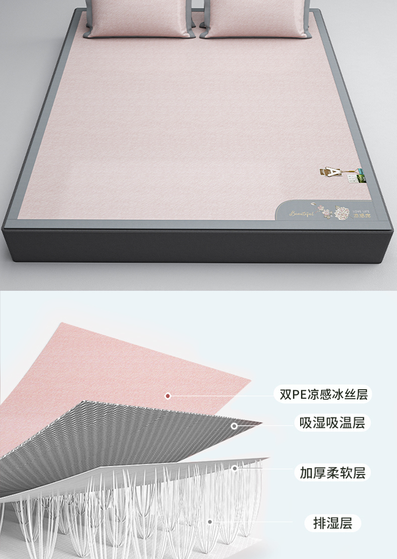 (总)小牛席业 2026春夏新款轻奢半定位凉感冰丝席凉席席子系列床笠款,轻奢半定位-粉色 床笠款,轻奢半定位-灰色 床笠款,轻奢半定位-蓝色 床笠款,轻奢半定位-抹茶 床笠款,轻奢半定位-香槟 床笠款