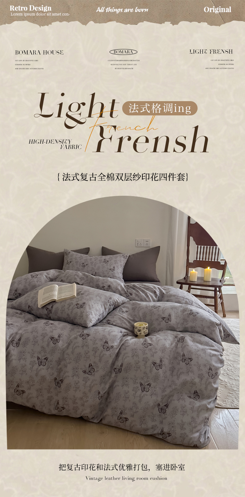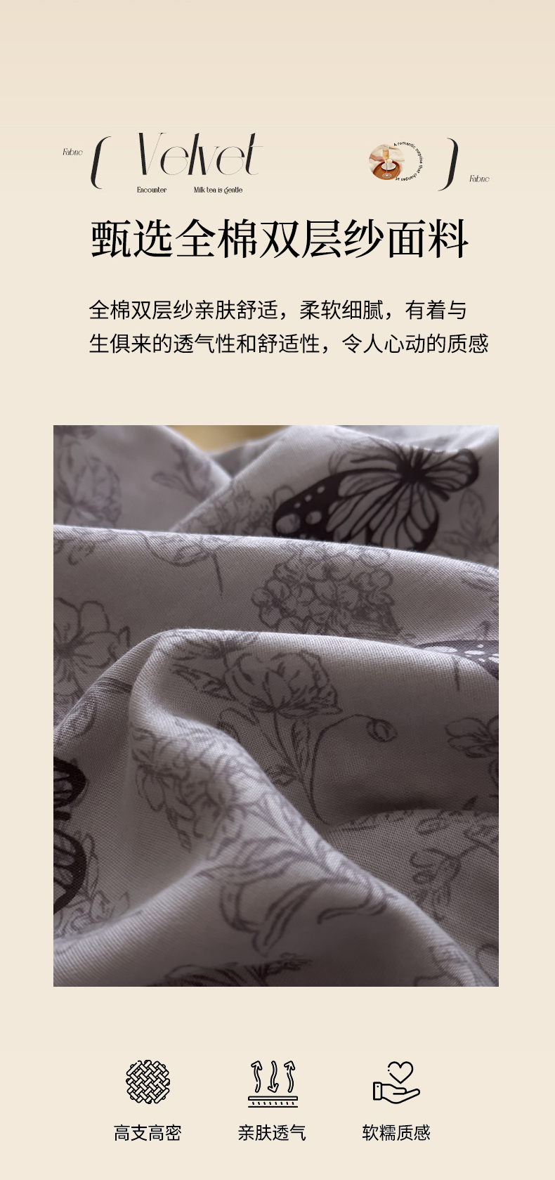 当前位置: 91家纺网 > 商品网购 > 床品套件 > 四件套 > 全棉普通四件套 > DoDo 兜兜 2026新款全棉纯棉复古双层纱四件套系列(可定做尺寸) 墨蝶