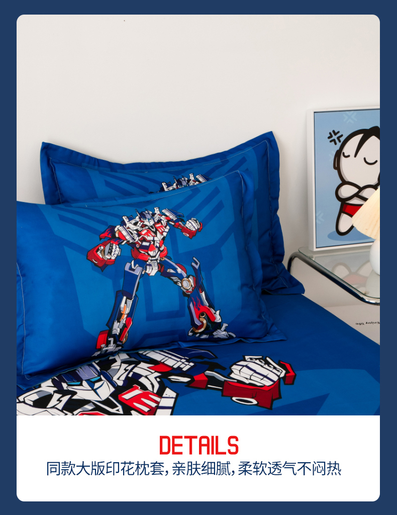 商品名称:一电 2026新款跨境电商卡通学生枕头套枕套48x74cm单只件一对装儿童男孩枕皮子-2.磨毛枕套 擎天柱