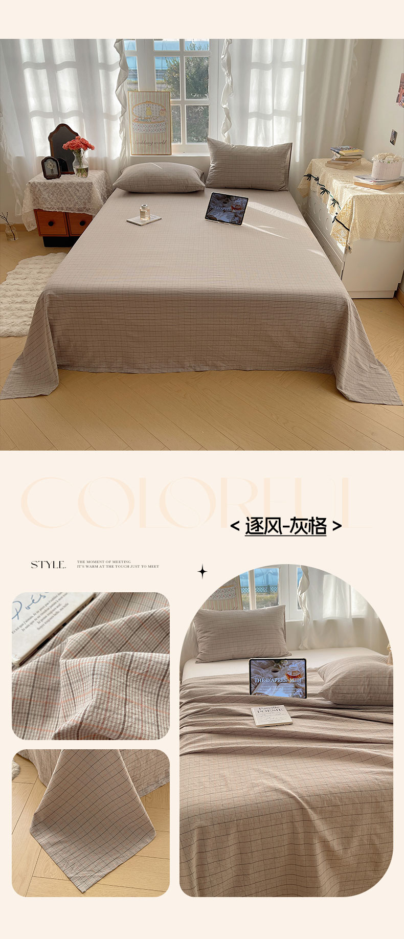 (总)六巷胡同 2026新款A类全棉纯棉水洗棉色织格子单品床单 床单单件,追光-蓝格,川奈-咖格,觅影-粉格,觅影-黑格,觅影-咖格,觅影-棕格,巷往-红格,巷往-灰格,巷往-橘格,巷往-蓝格,巷往-绿格,悦野-白格,悦野-灰格,知序-灰格,知序-橘格,知序-蓝格,知序-绿格,逐风-红格,逐风-灰格,逐风-咖格,追光-红格,追光-米格,组合图仅供展示不可下单