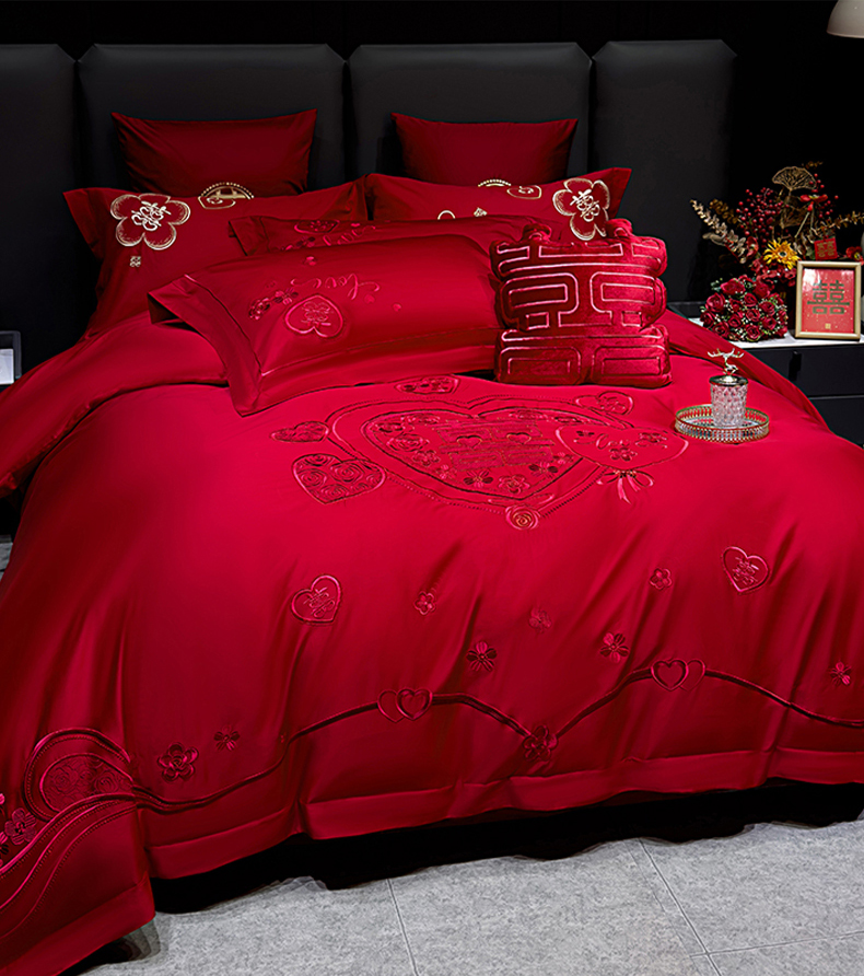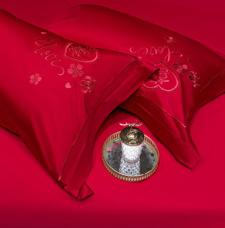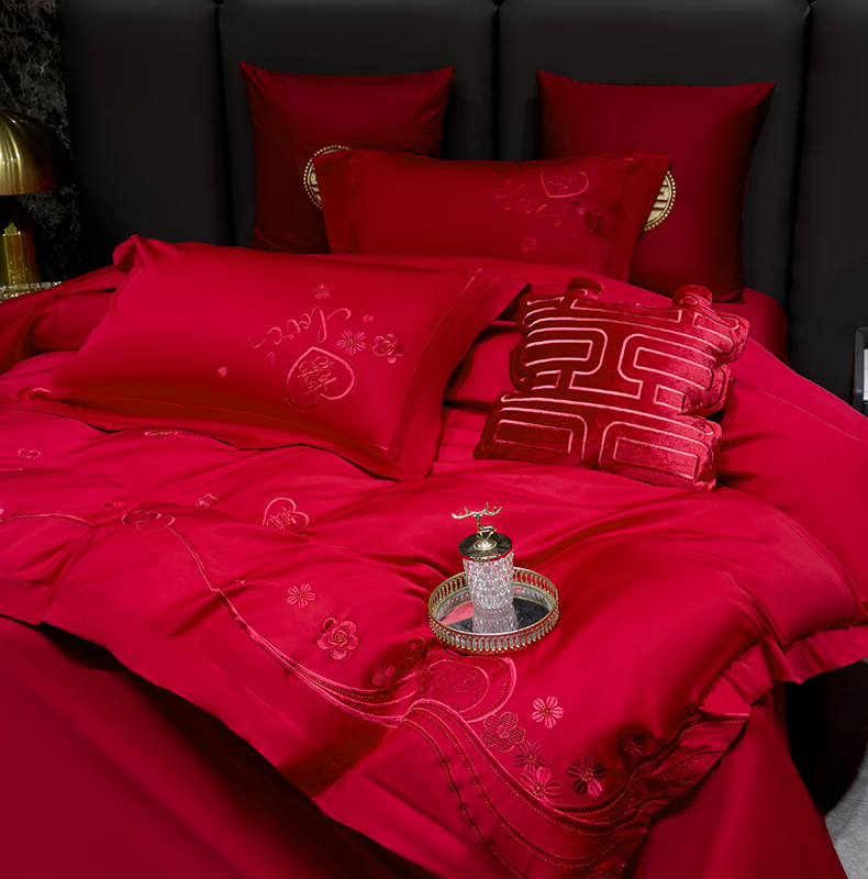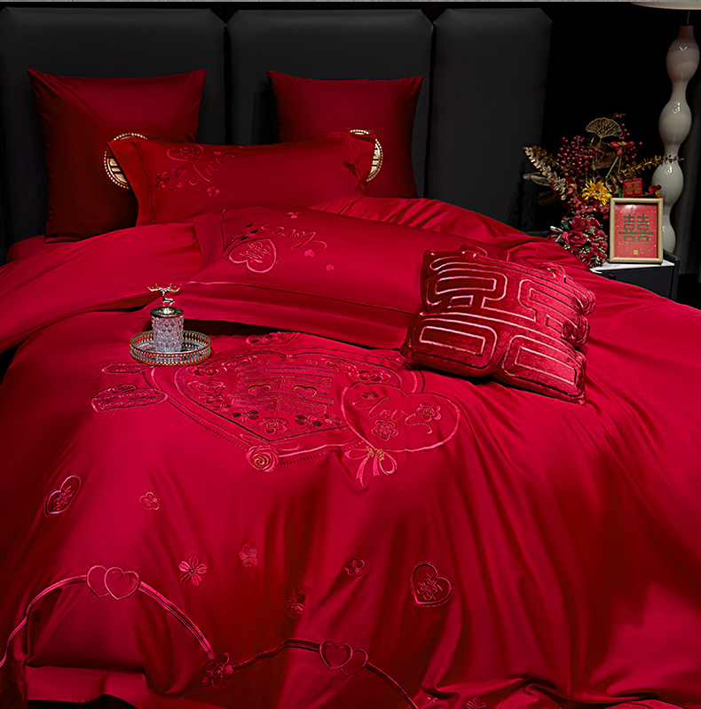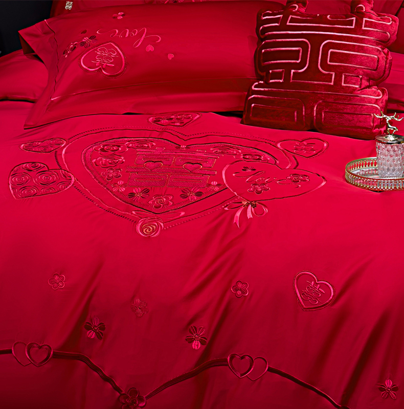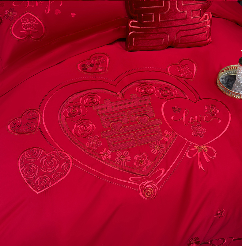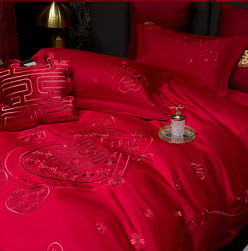 当前位置: 91家纺网 > 商品网购 > 床品套件 > 四件套 > 婚庆四件套 > 甜咪咪婚庆 2026春夏新款全棉纯棉绣花结婚婚庆四件套多件套床单床盖款 欢天喜地红
