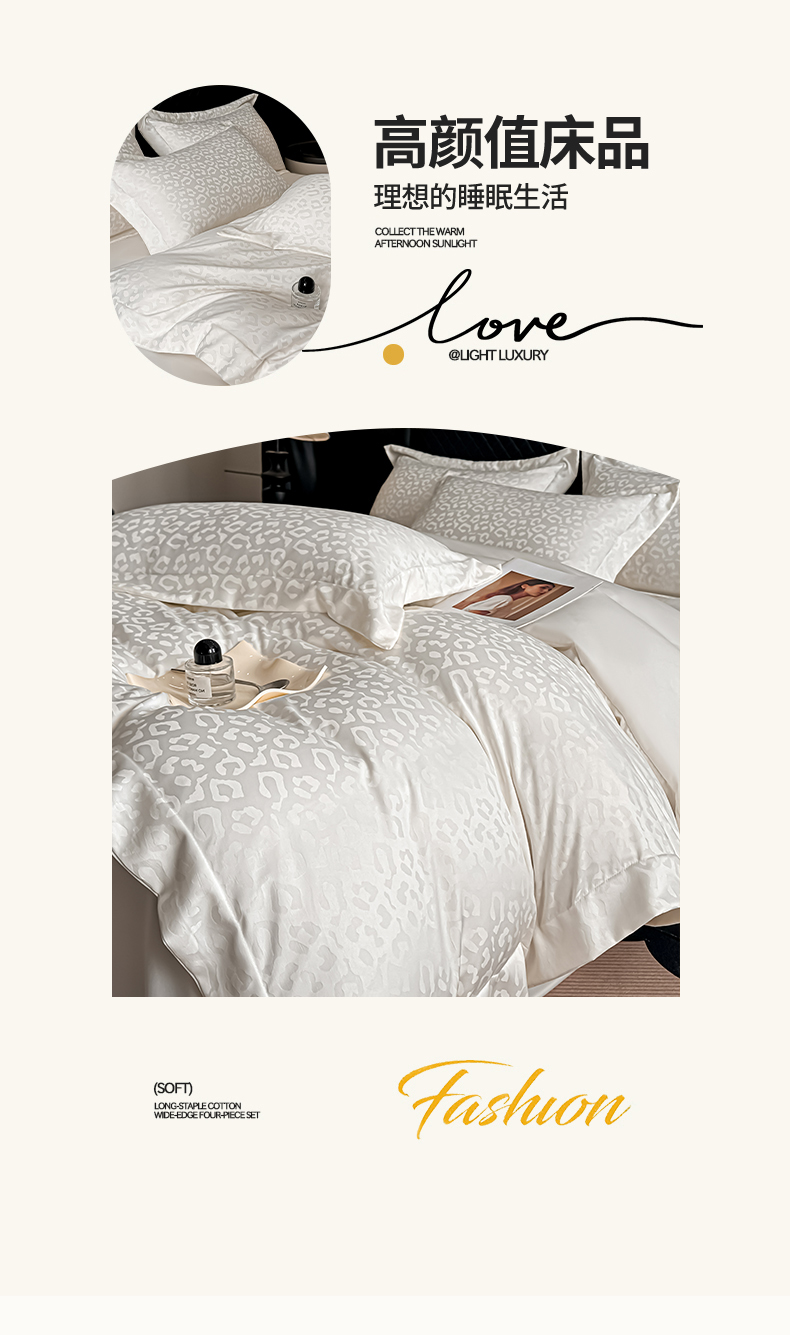 当前位置: 91家纺网 > 商品网购 > 床品套件 > 四件套 > 其它四件套 > 金阳光家纺 2026春夏新款A类水洗真丝天丝高奢提花豹纹四件套 豹纹-香槟色