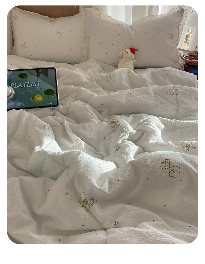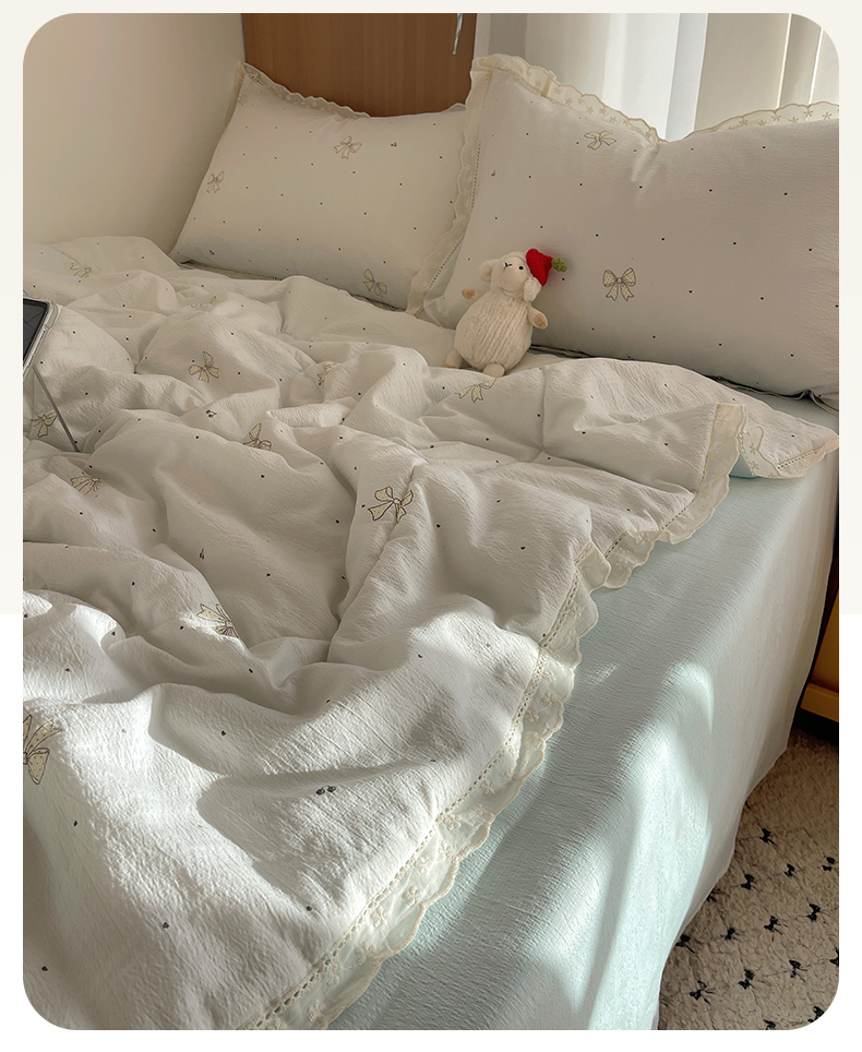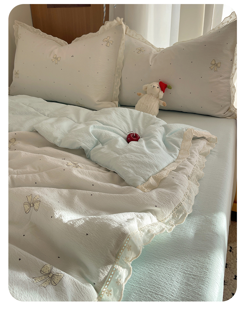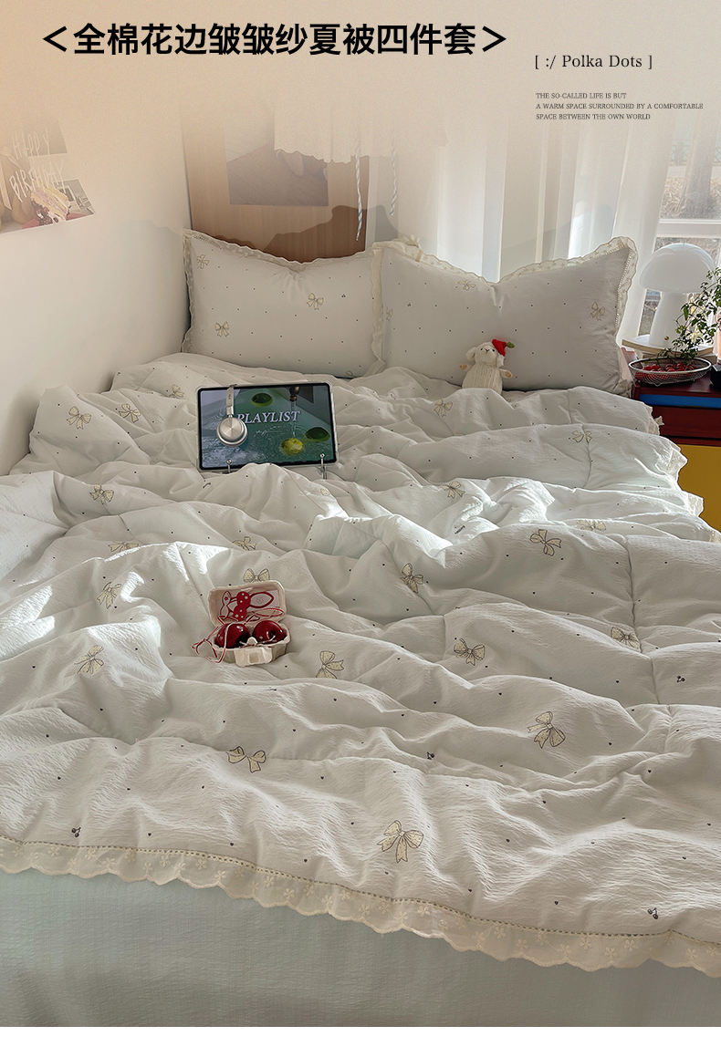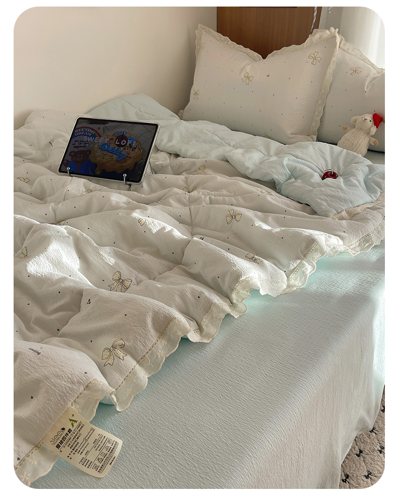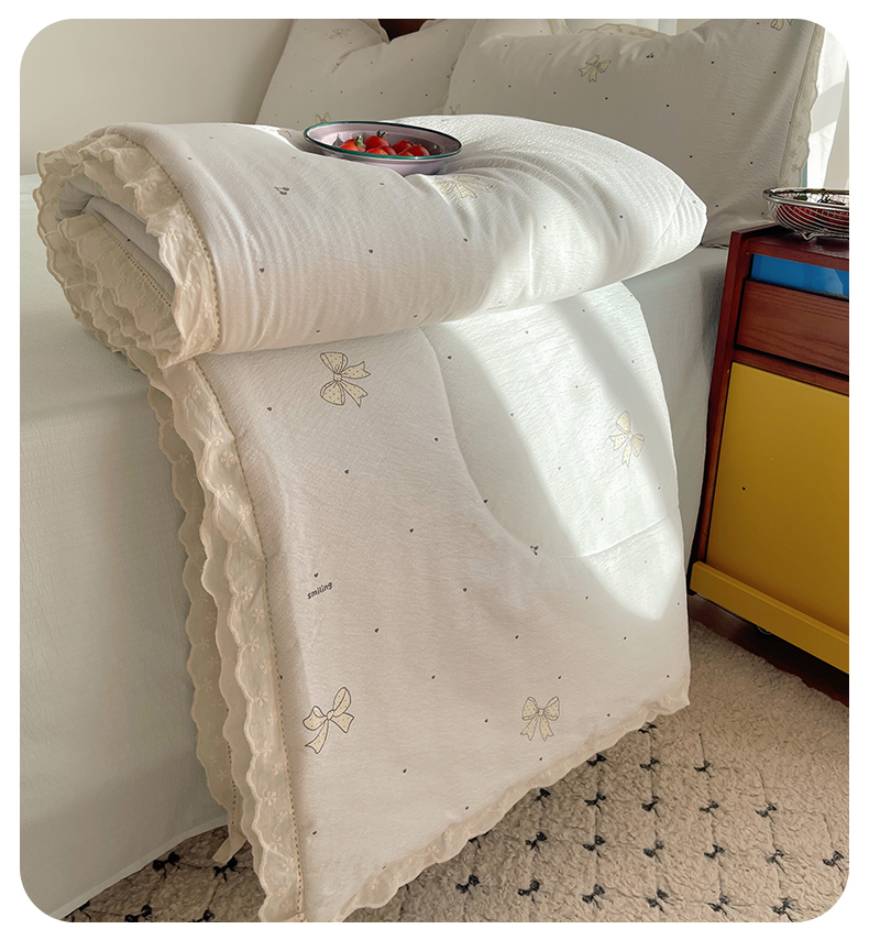 宝士康家纺 2026新款10A抗菌提花色织花边单夏被/夏被四件套/空调被 波点结心