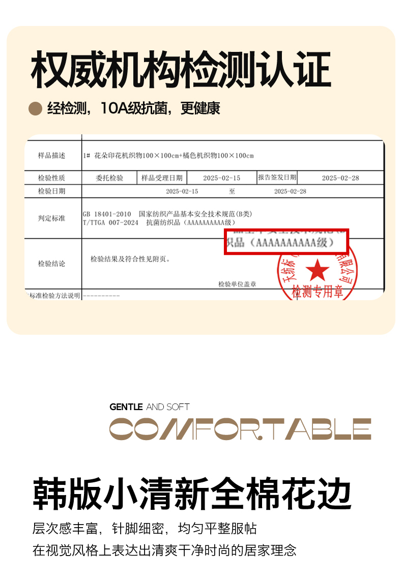 4、通州区市场监管局川姜分局友情提醒:近期针对抗静电,无静电,抗菌防螨,及有关舒适度,百分比的举报高发。为不影响商品正常销售,请各商家高度重视,自检自查及时整改,谢谢配合!
