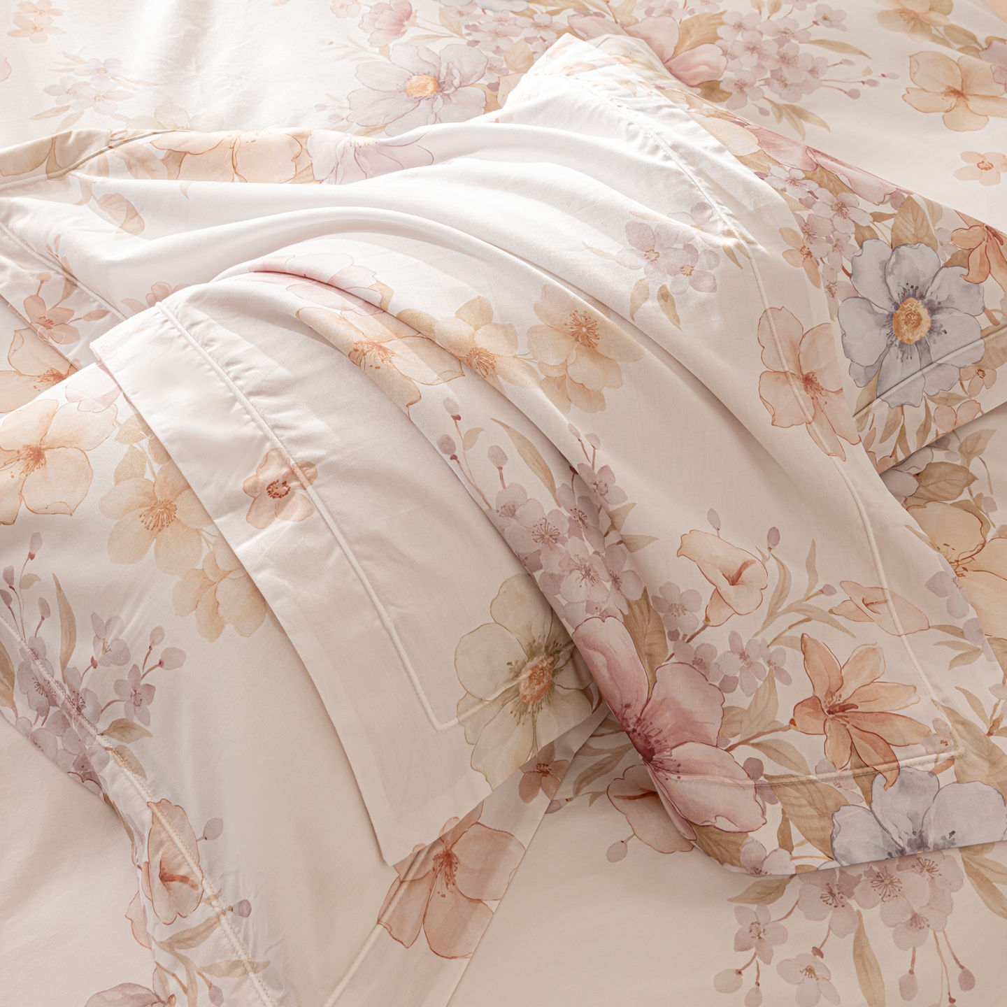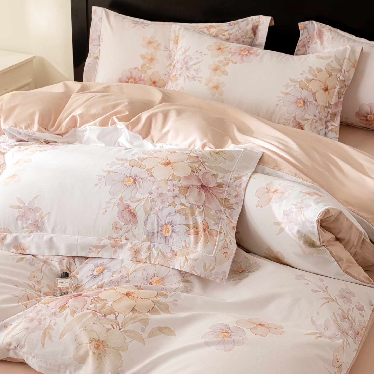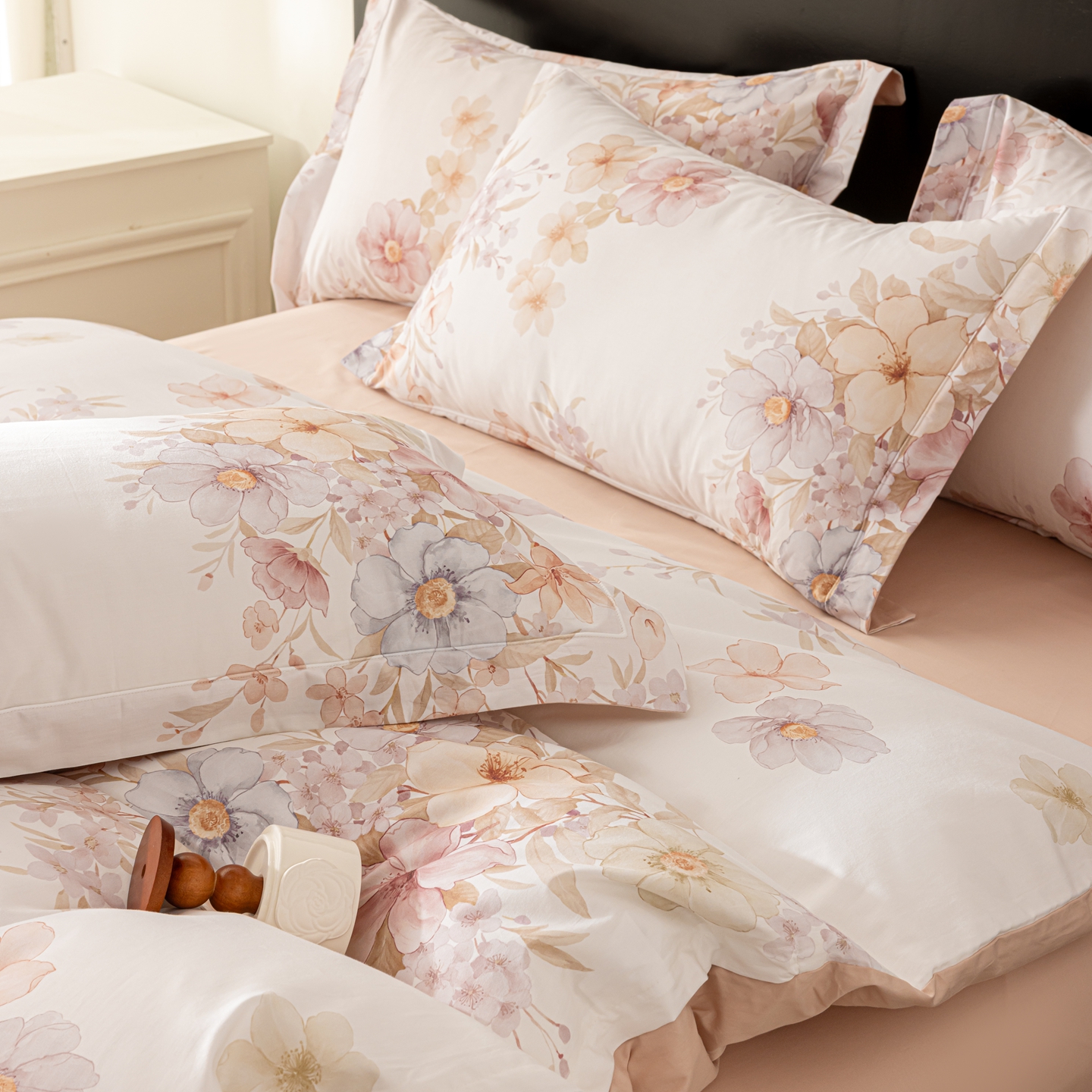 莱豫家纺 2026新款50s阿克苏长绒棉数码印花四件套 昕芸粉