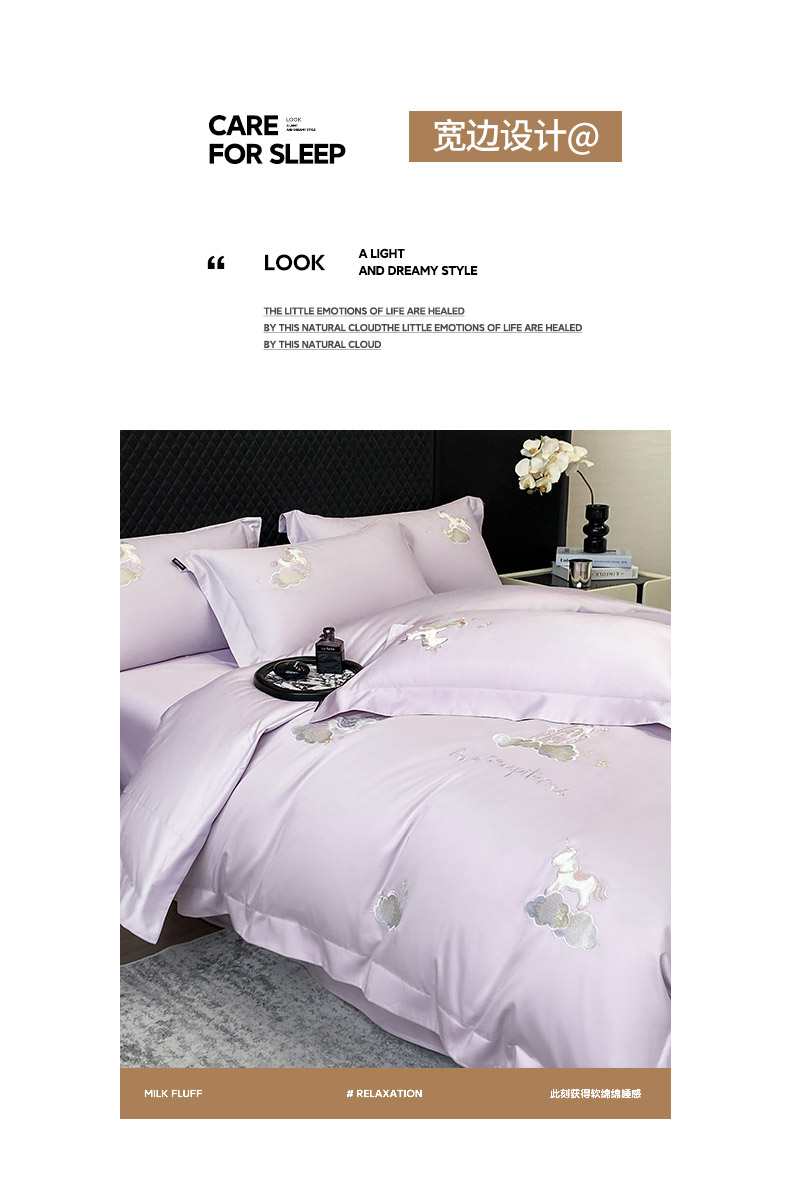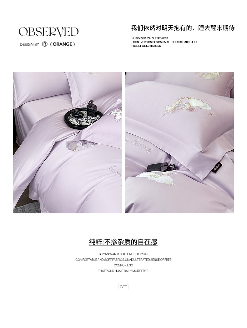 当前位置: 91家纺网 > 商品网购 > 床品套件 > 四件套 > 长绒棉四件套 > 春夏新品A类长绒棉纯棉四件套100全棉重工刺绣被套床单床笠纯色高端轻奢床上用品 城堡小马-黛紫