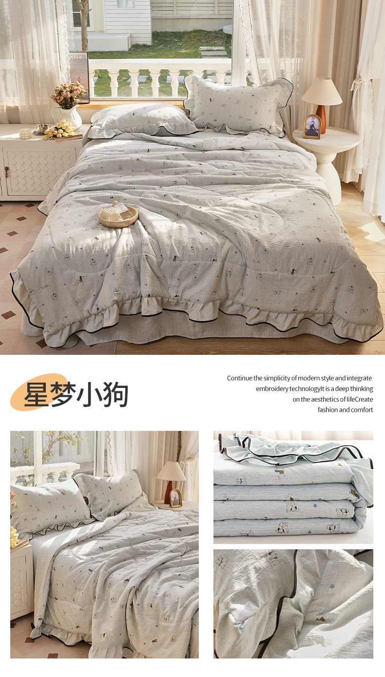 宝士康家纺 2026新款10A抗菌提花色织花边单夏被/夏被四件套/空调被 星梦小狗