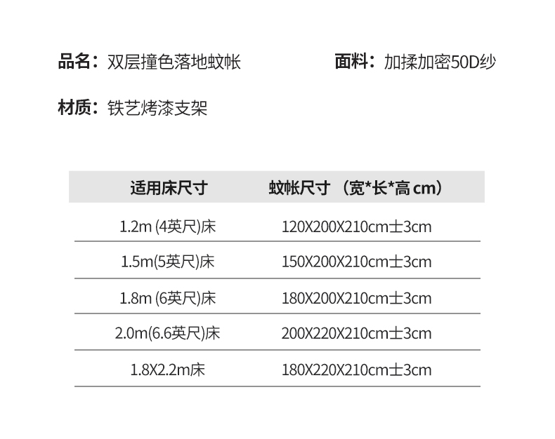 (总)青竹苑 2026春夏新款双层纱撞色落地蚊帐,孔雀蓝,薄荷绿,宝蓝,嫩粉色,柠檬黄,太妃紫,香槟色,玉色
