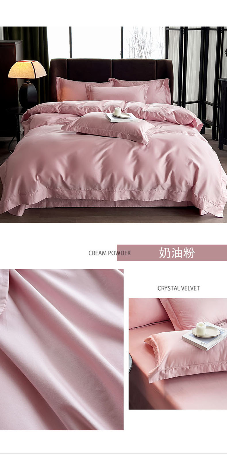 商品名称:栩裕纺织 2026新款双股长绒棉纯色单品被套系列-邂逅 奶油粉