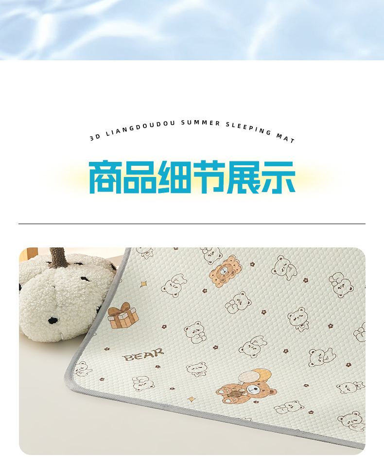 商品名称:奇丝雅 2026新款A类母婴级婴儿凉感冰豆豆凉席儿童新生小宝宝床幼儿园床拼接床冰丝席 饼干熊