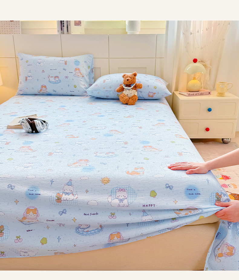 (总)眠势力 2026新款双层纱床笠单件云感皱皱纱床罩三件套床垫保护套,紫雾花汀,缤纷彩结,彩色心情,草莓蝴蝶结,春野织梦,哈喽猫咪,海盐奶猫,花漾草莓,金蝶逐影,萌兔乐园,青樱兔语,向云端,星梦甜心,幸运小马,紫芋南瓜,组合图 仅供参考
