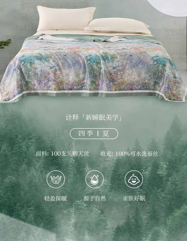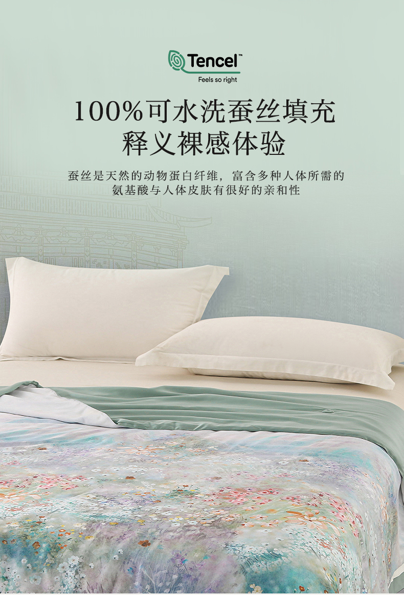 (总)薇玛仕 2026新款绣花80支兰精天丝可水洗蚕丝被100蚕丝填充夏凉被空调被,碧空蓝,春色绿,静谧紫,倩影粉,清雅灰,香槟咖
