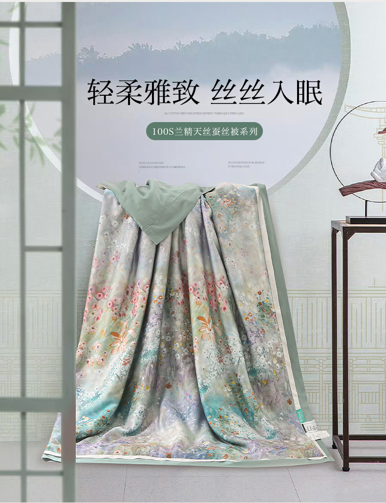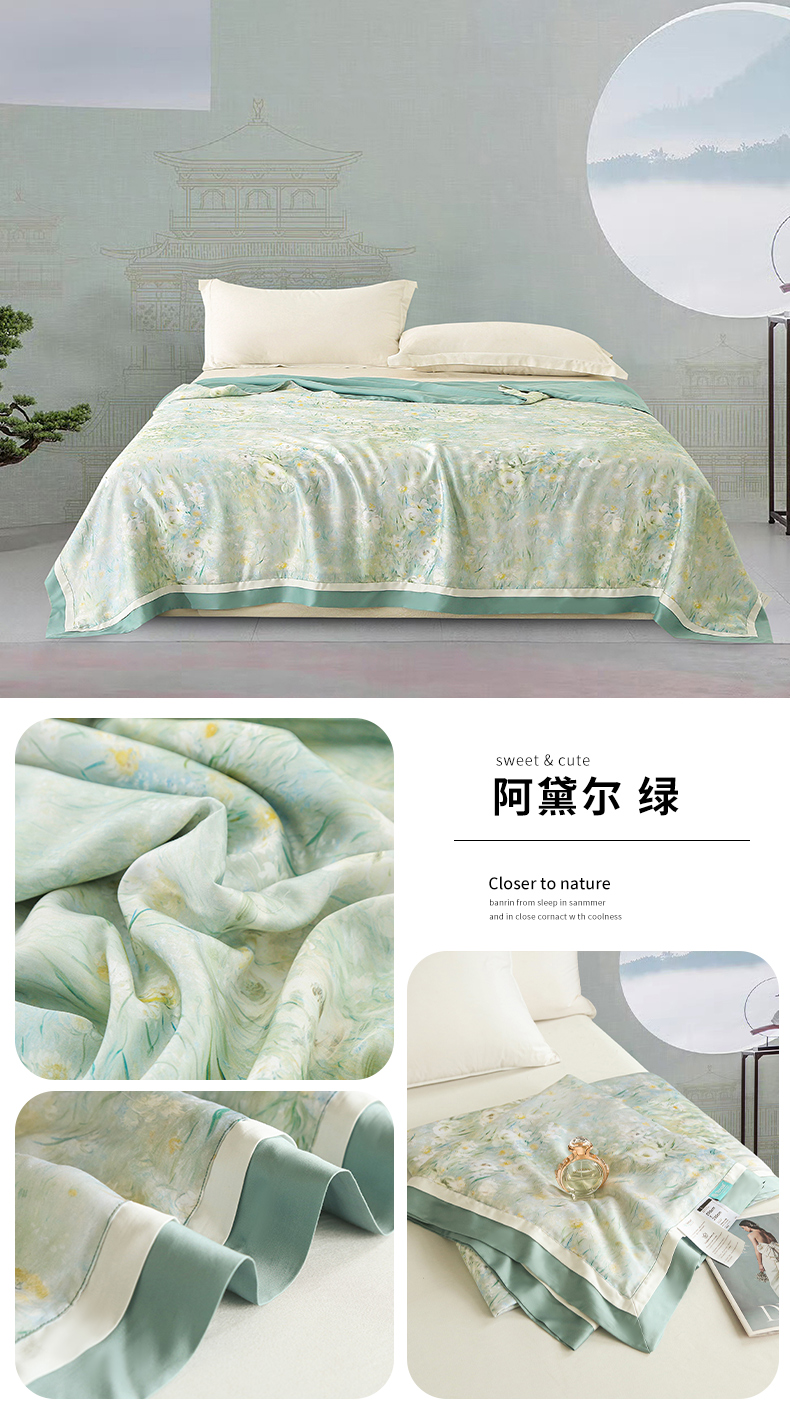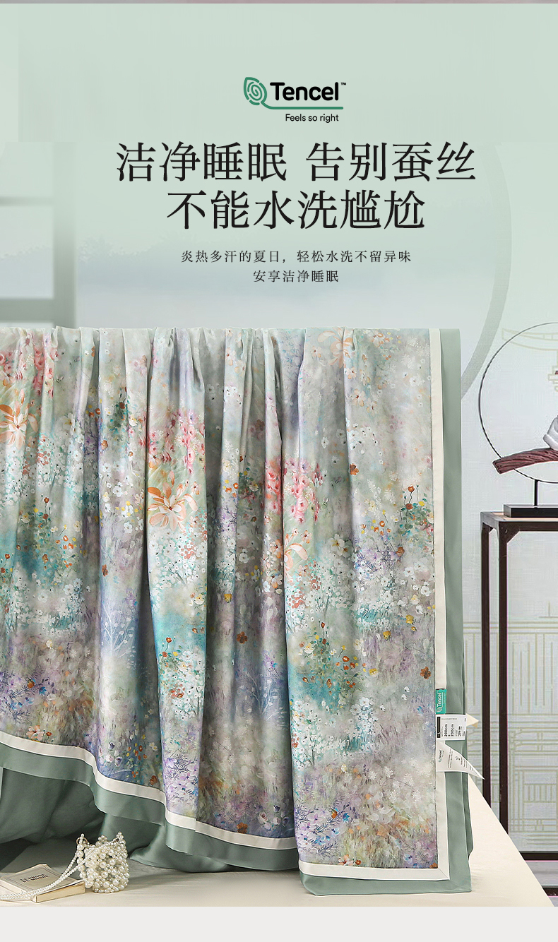 (总)薇玛仕 2026春夏新款100支兰精天丝数码印花可水洗蚕丝夏凉被空调被100蚕丝填充可过检测,阿黛尔 绿,蒂芙尼 粉,维多利亚 蓝,伊芙琳 绿,伊莎贝拉 粉