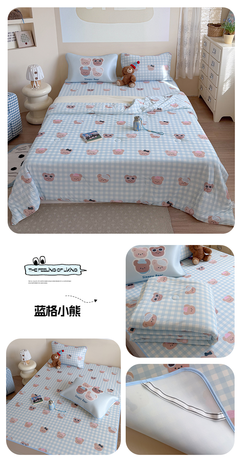 (总)美乐迪家纺 2026新款水光冰丝凉席夏被,豹纹猫猫,动物棋盘格,粉条小熊,格子狗狗,居家日记,蓝格小熊,蓝色费尔岛,猫咪甜甜圈,拼接小猫,甜蜜伙伴,星星猫咪,星星小奶狗,组合