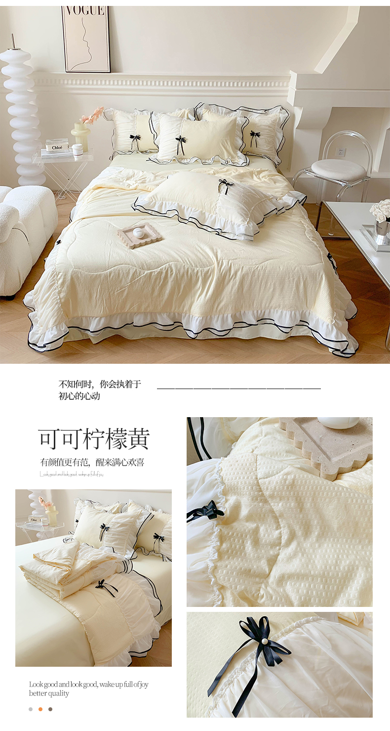 商品名称:吾欢心 2026新款小香风可可系列双层花边夏被四件套被子被芯 可可柠檬黄