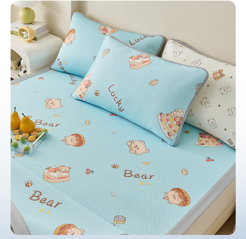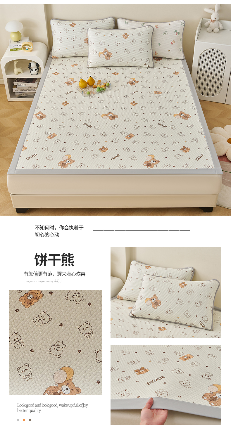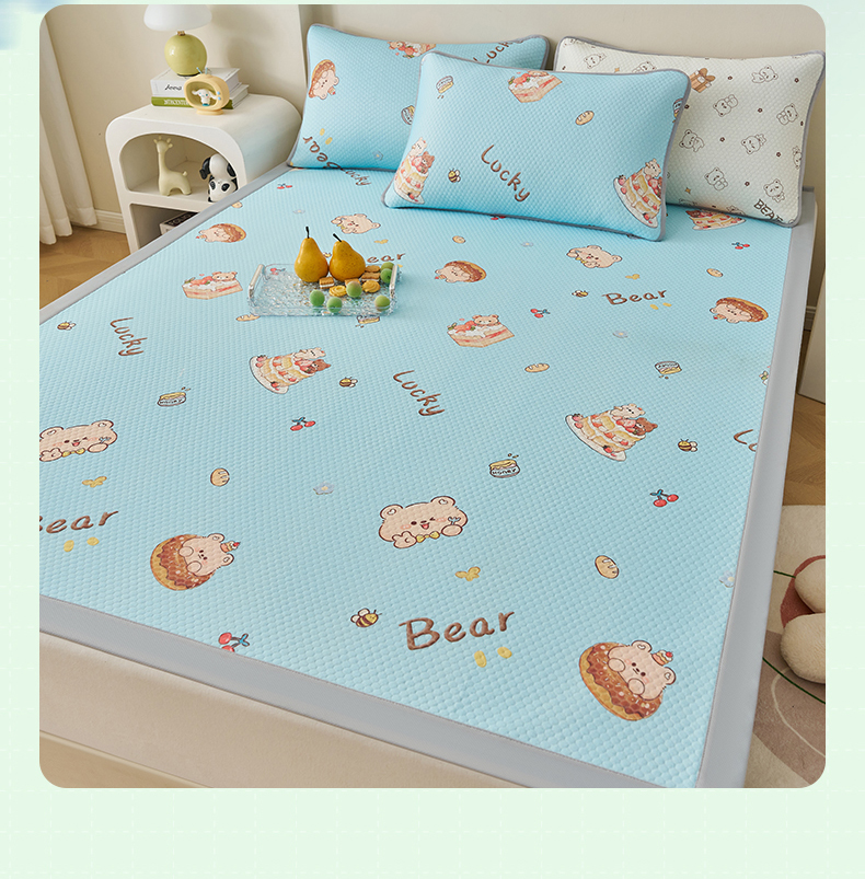 (总)奇丝雅 2026新款夏季A类真PE凉感冰豆豆凉席冰丝床单单件冰丝席可机洗单人-学生床,八宝熊-灰,八宝熊-咖,八宝熊-蓝,八宝熊-绿,八宝熊-粉