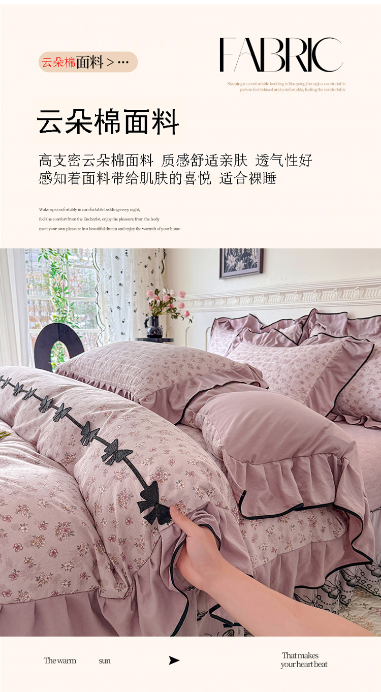 商品名称:(总)漫布云家纺 2026春夏新款超柔云朵棉古法水洗棉床盖款四件套--赫本风系列