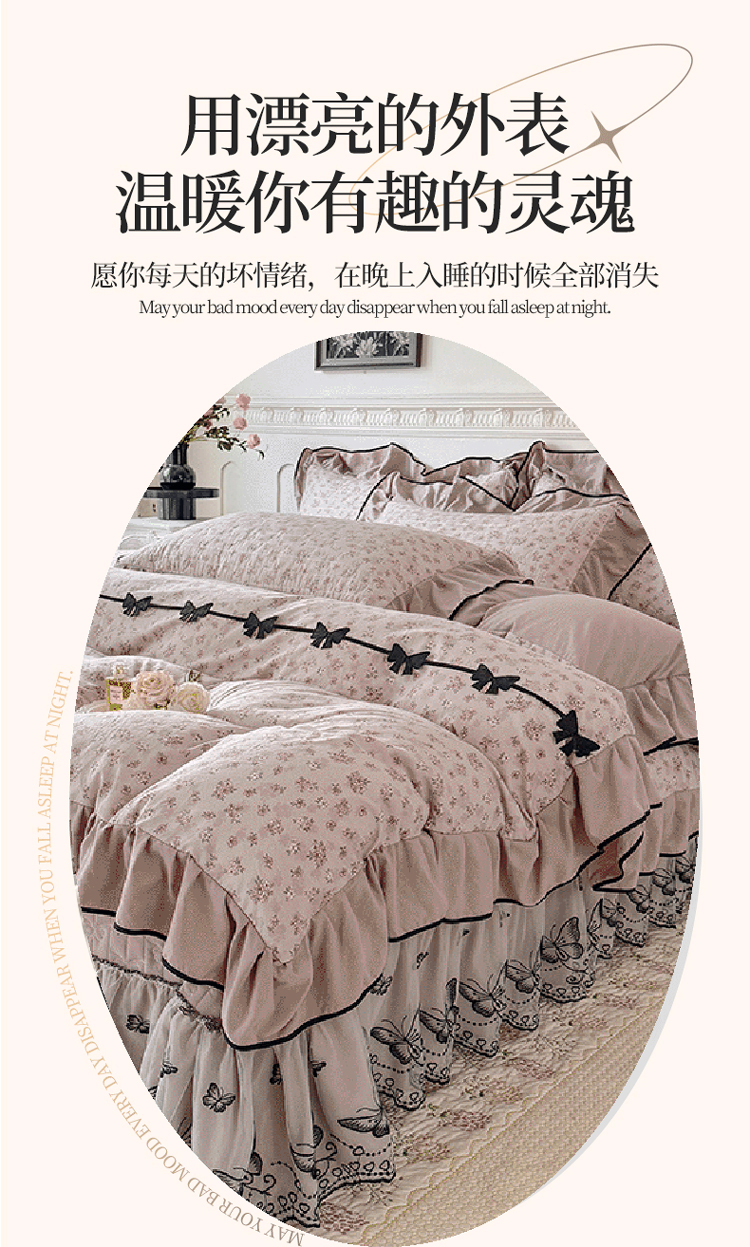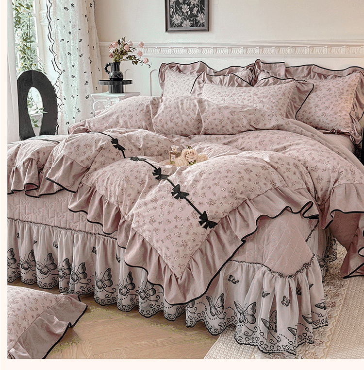 漫布云2026秋冬新款11斤230g全消光牛奶绒夹棉床盖款四件套纯色蕾丝花边刺绣床裙款床盖,蝶恋花-梦幻紫, 蝶恋花-嫩黄, 蝶恋花-新芽绿 ,蝶恋花-婴儿蓝 ,蝶恋花-樱花粉