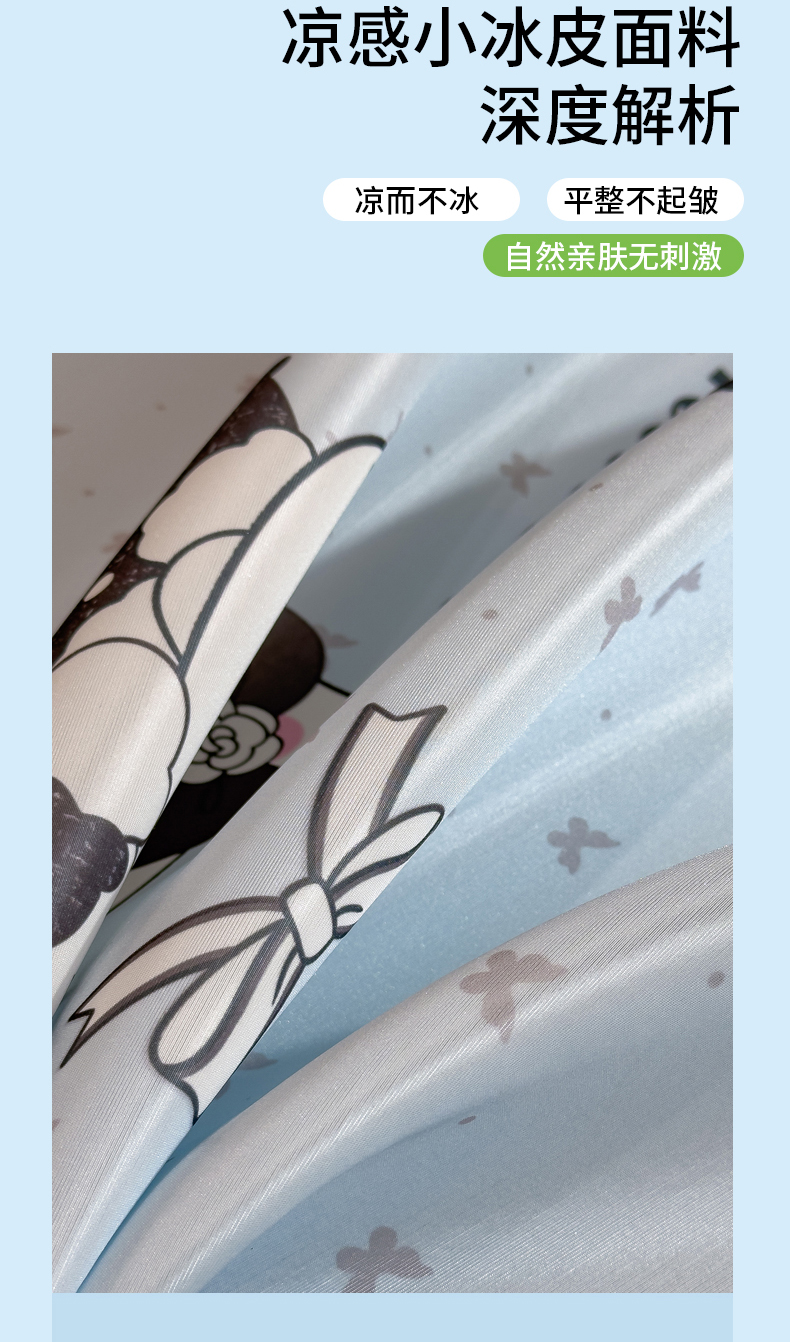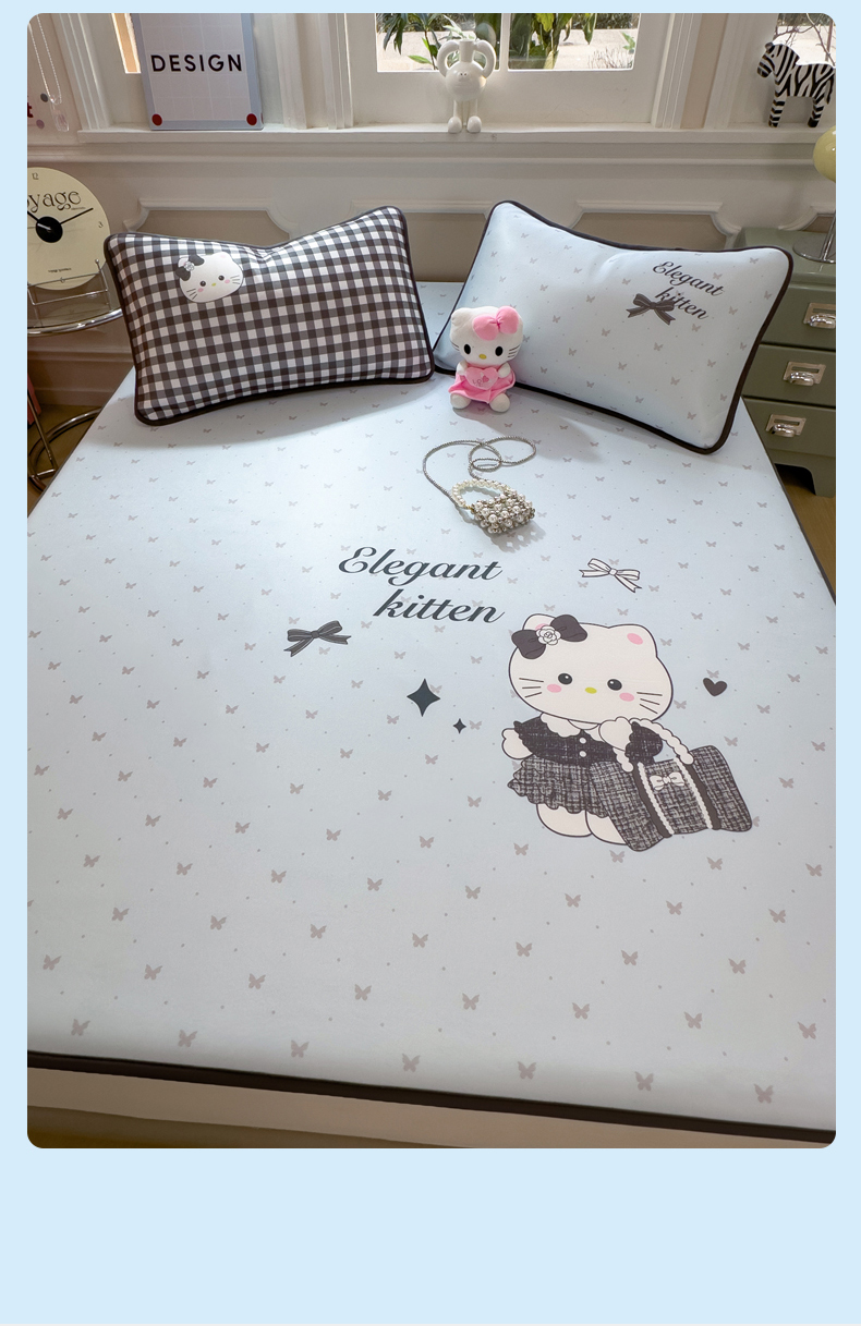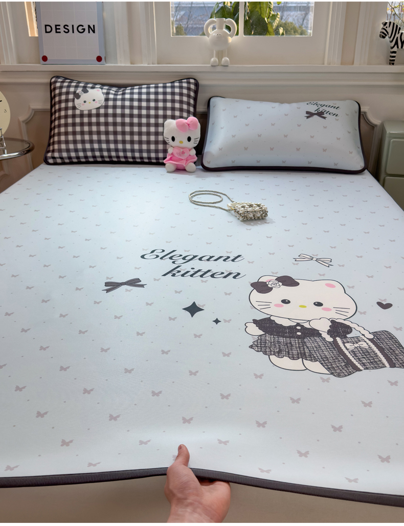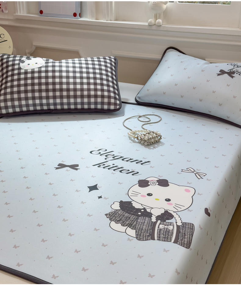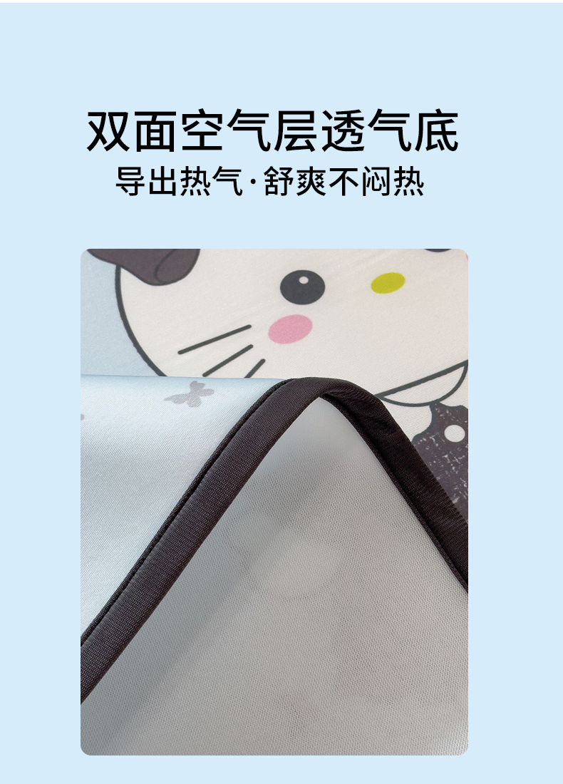 商品名称:丝羽坊 2026新款ins设计师原创大版小清新卡通冰皮复合软凉席 香风喵语-平铺款
