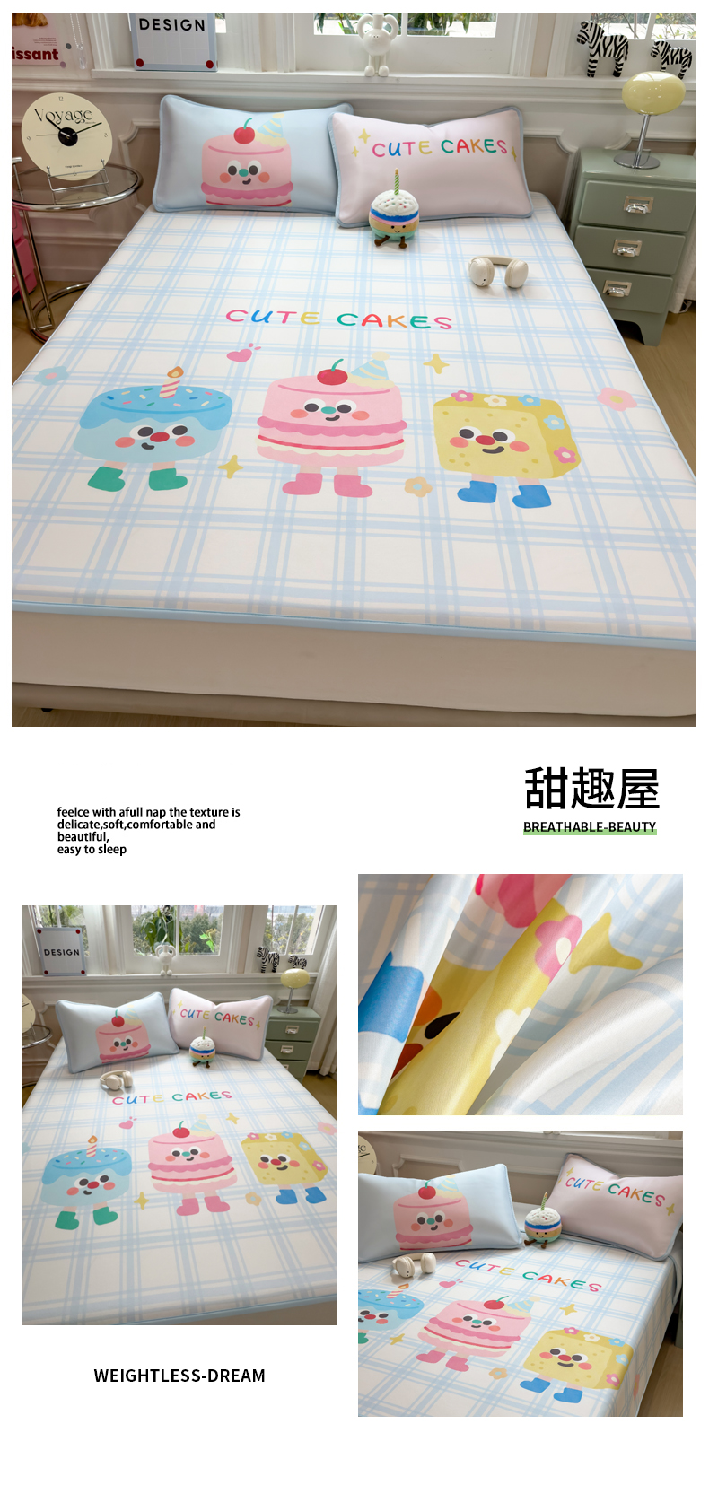 (总)丝羽坊 2026新款小版印花碳光冰丝凉席床笠款,星梦喵屋,蓝花熊语,小甜心,云漫花絮,兔宝,星光灿烂,彩色心愿,春日猫记,蛋糕猫,黑蝴蝶,花甜猫,绿叶,猫叙花间,萌宠甜心,小犬时光,幸运企鹅,叶语