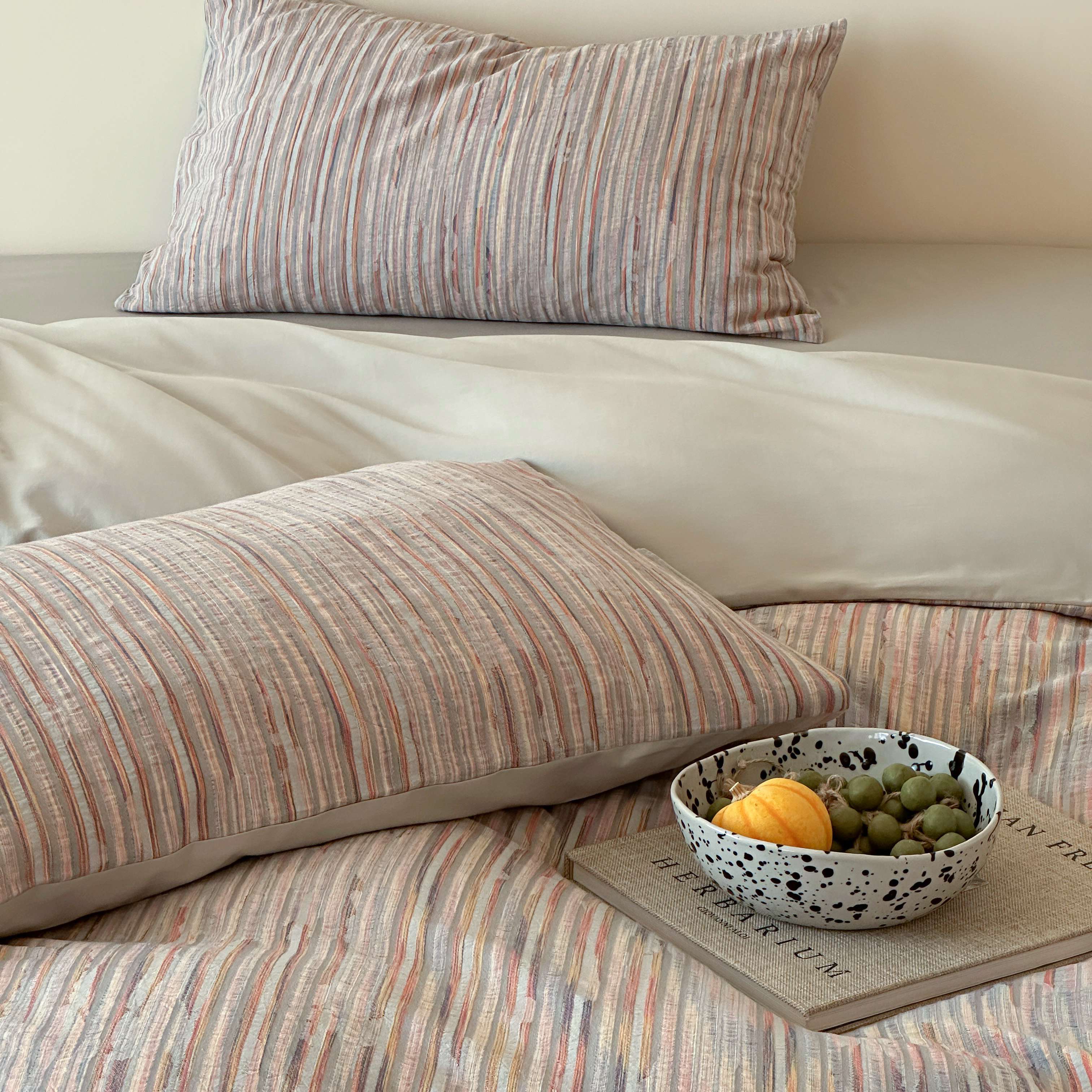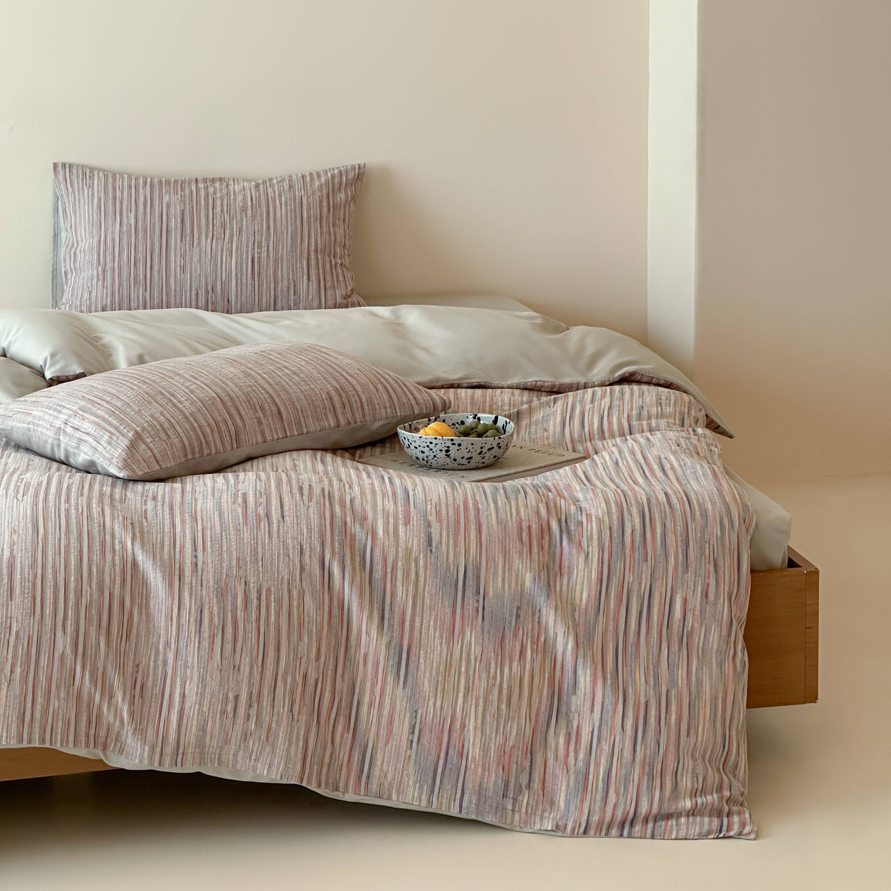 商品名称:云上 2026新款全棉纯棉色纺混段染条四件套-暮光 暮光-橙灰