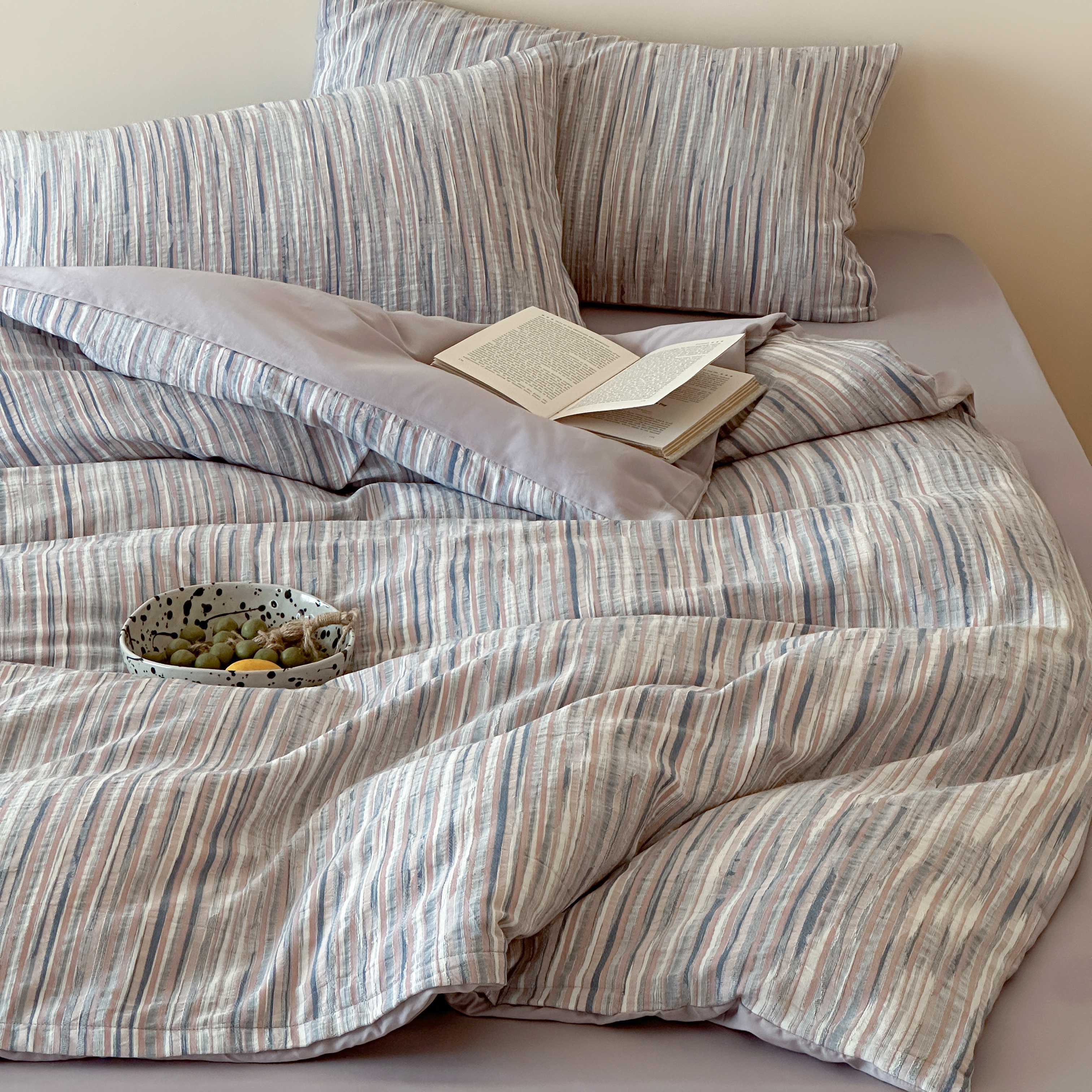 云上 2026新款全棉纯棉色纺混段染条四件套-暮光 暮光-橙灰