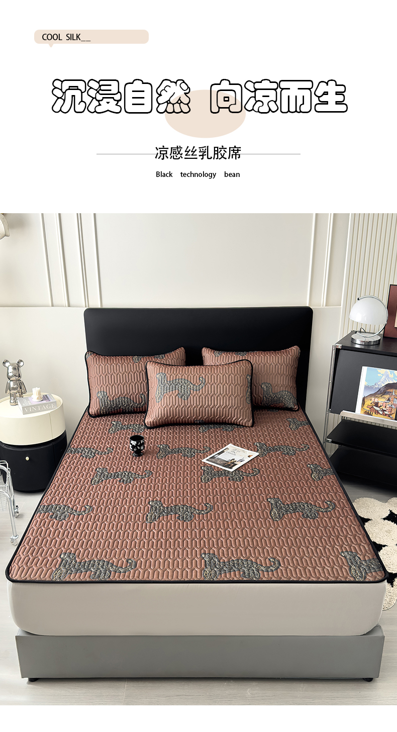 久云居 2026新款0.05mm加厚乳胶凉席席子 中古豹床单款
