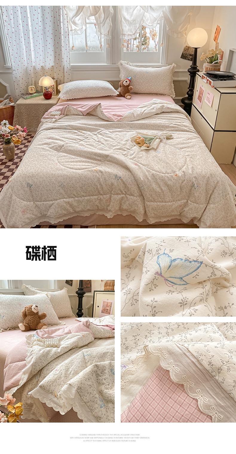 (总)老帅的工厂店 2026新款A类古棉花边抗菌夏被,碟栖,粉海星谣,粉蔷织,花境,花影,结语,鹿踪,猫语,奶芙犬,奶咖犬格,苹果小象,青柠果篮,狮野花集,兔盯花语,兔序,杏棠,织本碟