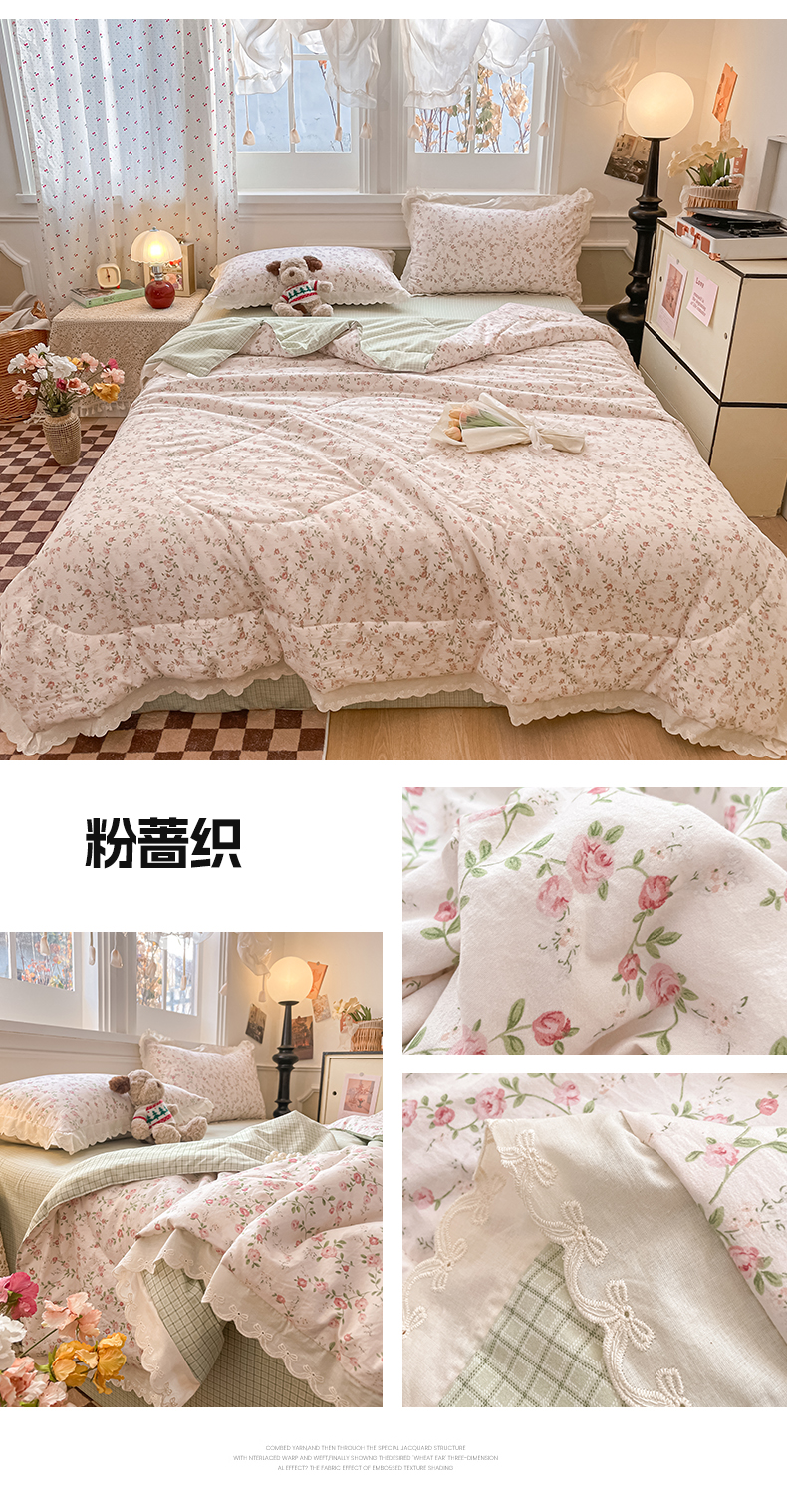 商品名称:老帅的工厂店 2026新款A类古棉花边抗菌夏被 粉蔷织