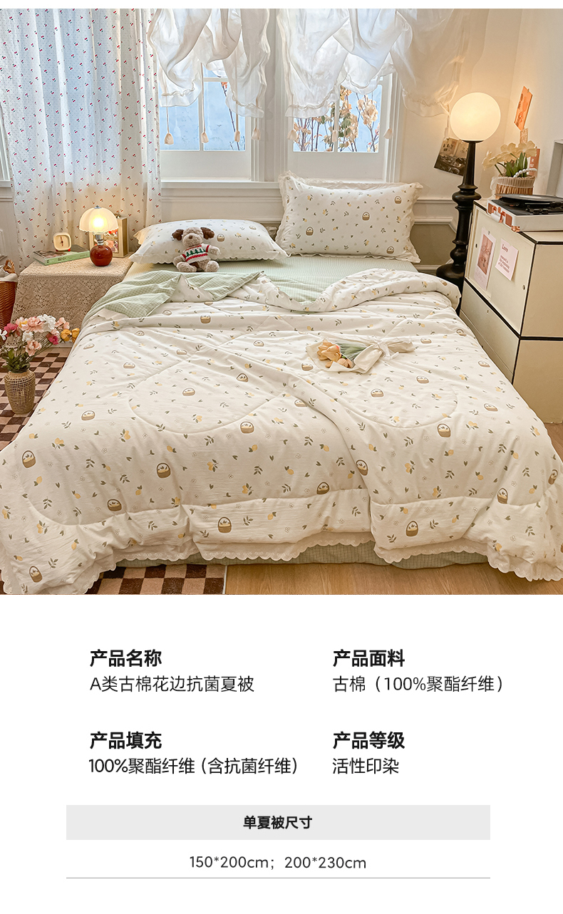 商品名称:老帅的工厂店 2026新款A类古棉花边抗菌夏被 青柠果篮