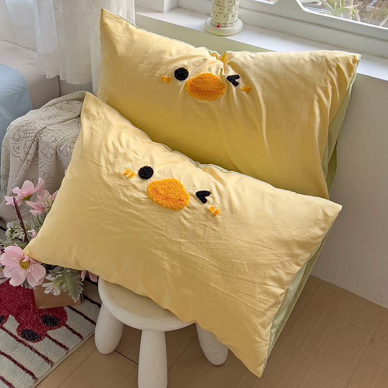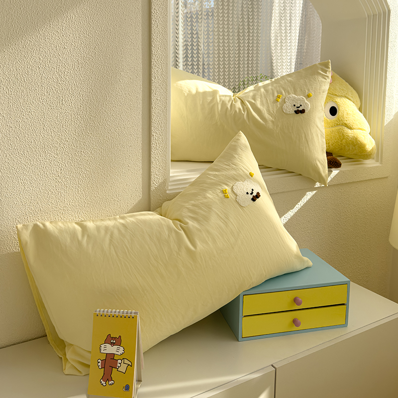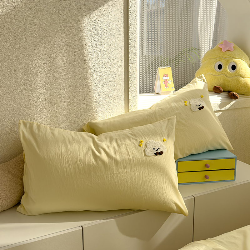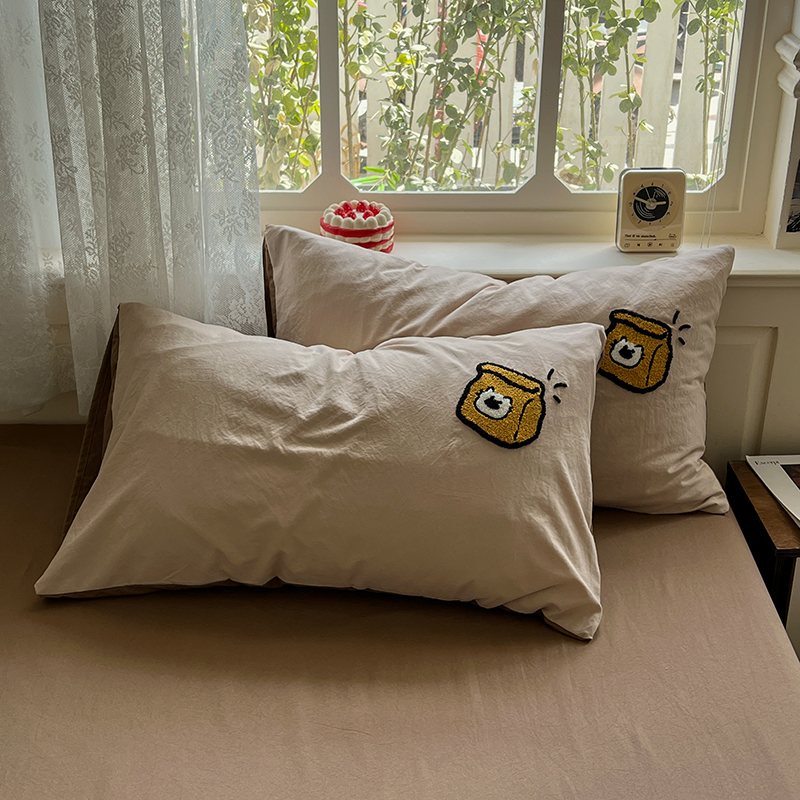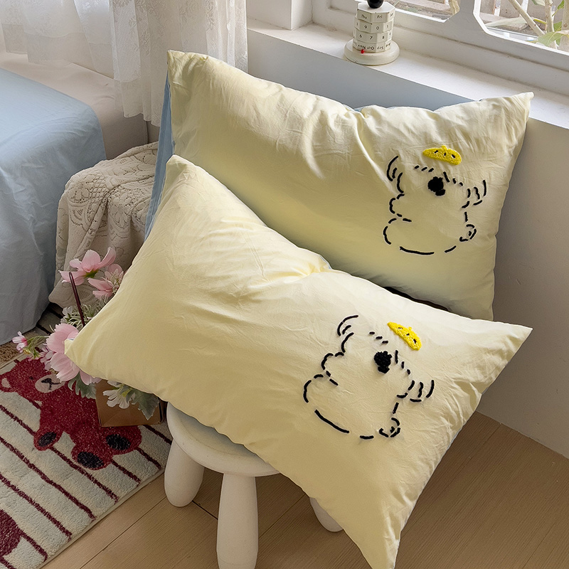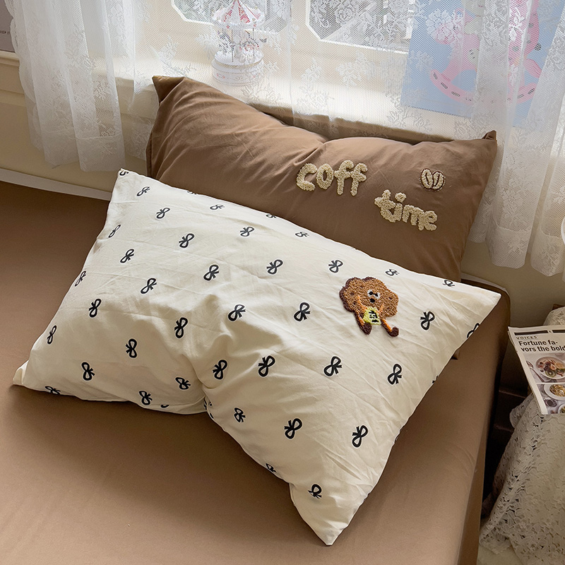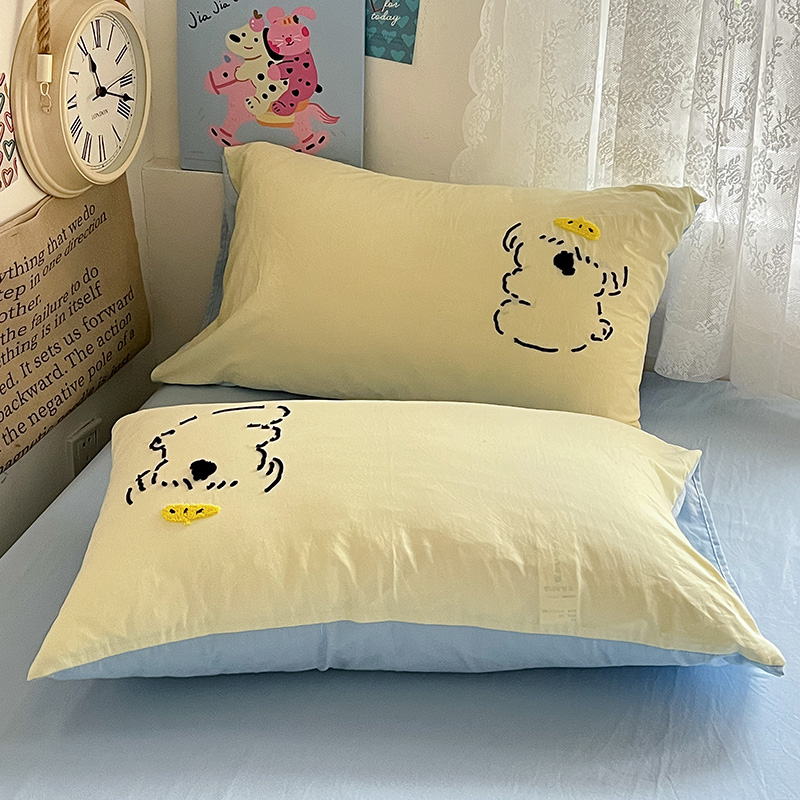 曼谷 新款毛巾绣四件套ins煤球图案柔软磨毛水洗棉套件 煤球-芝士绿,煤球-芝士绿