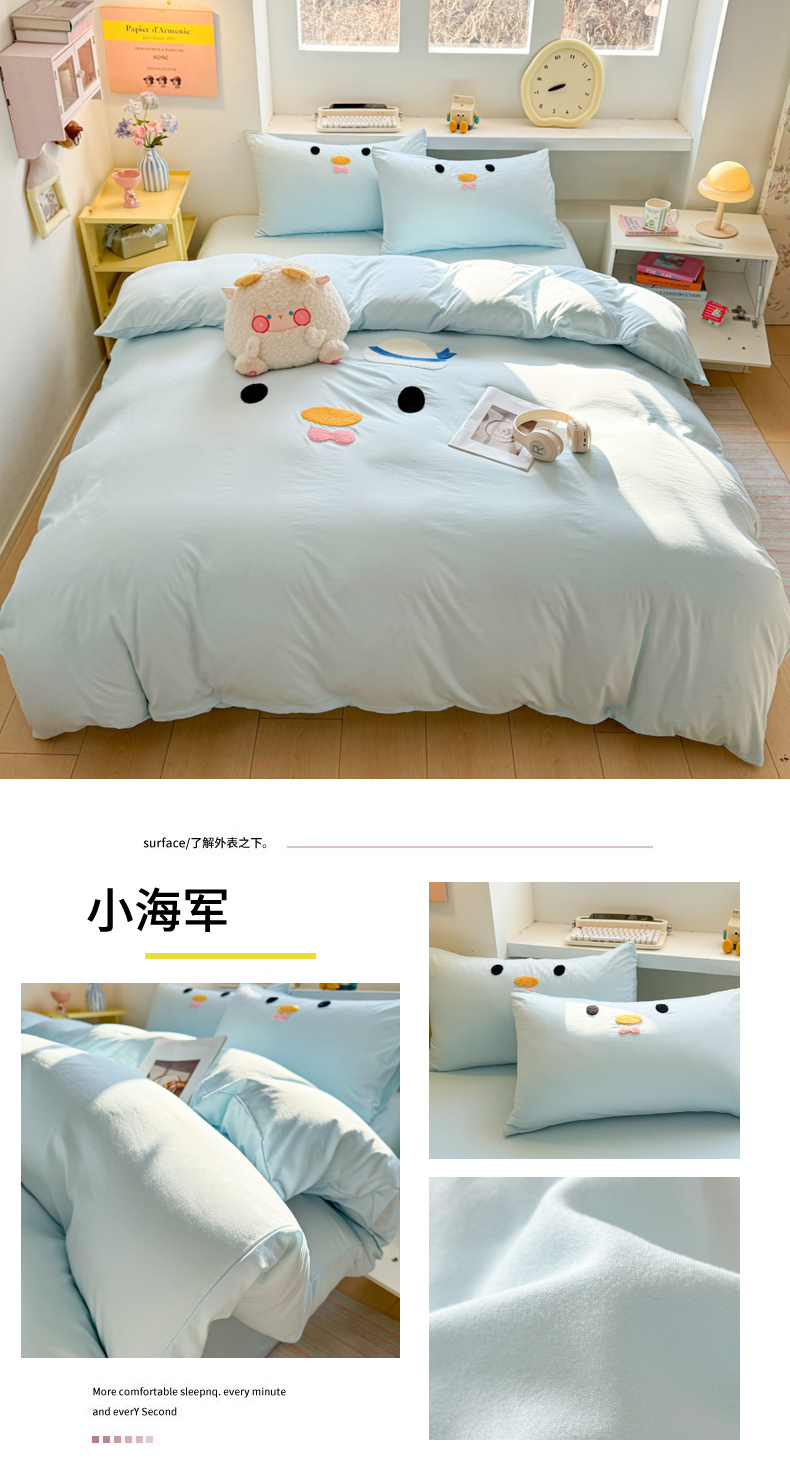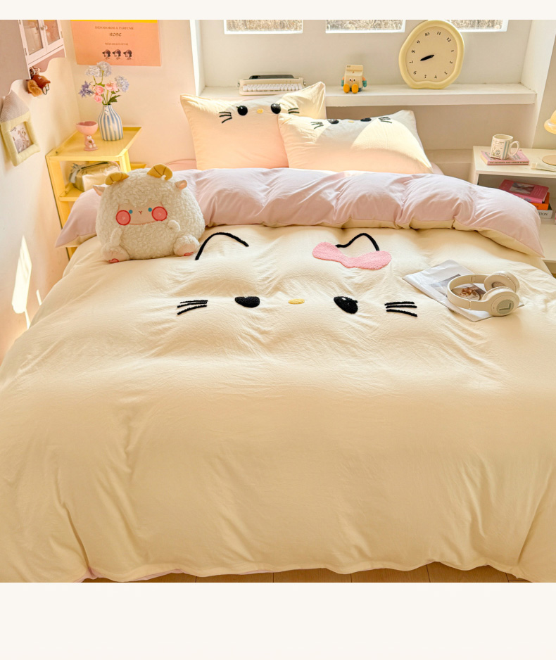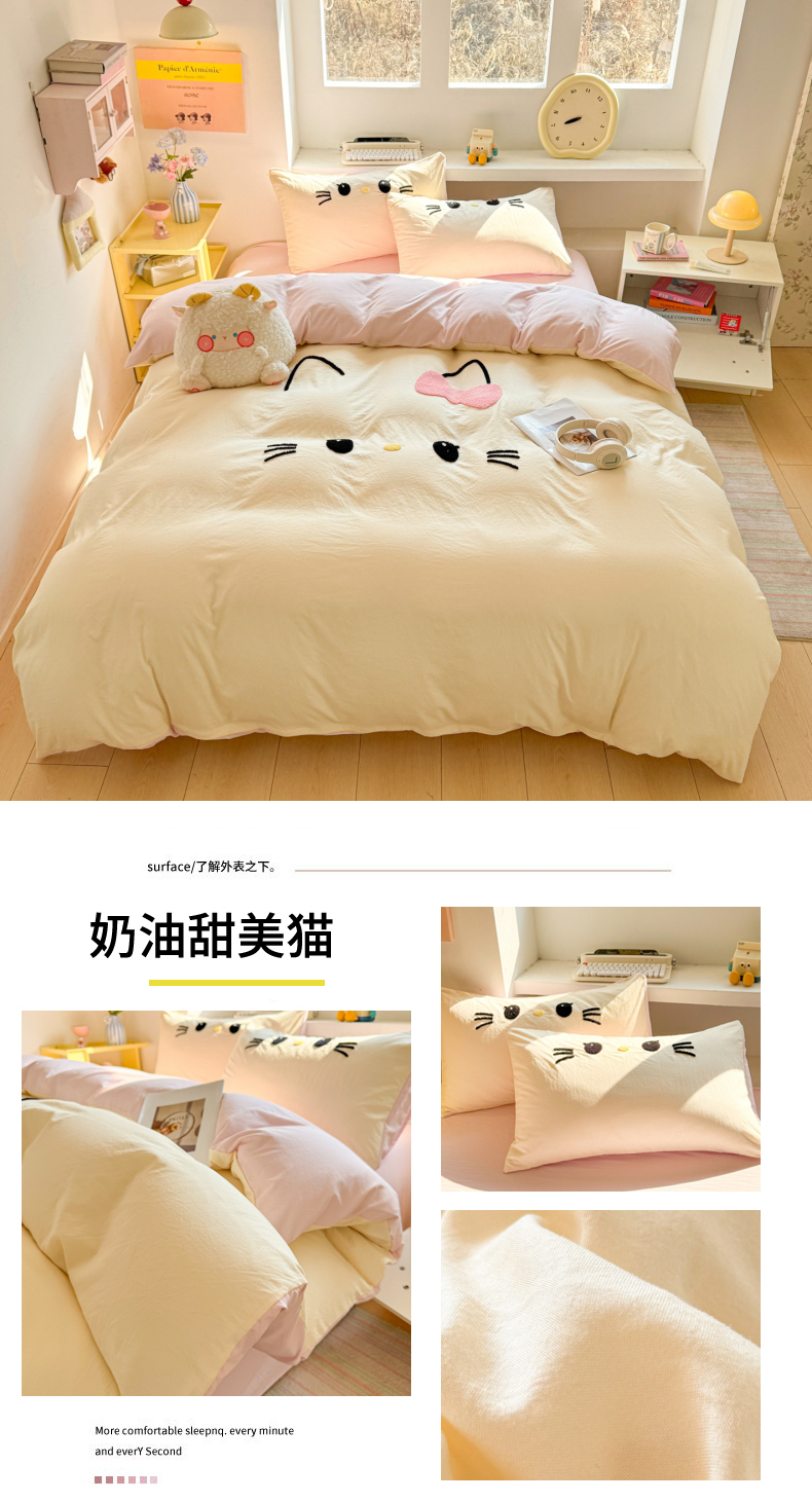 商品名称:雨帆家纺 2026新款云朵棉卡通毛巾绣四件套 奶油尼尼