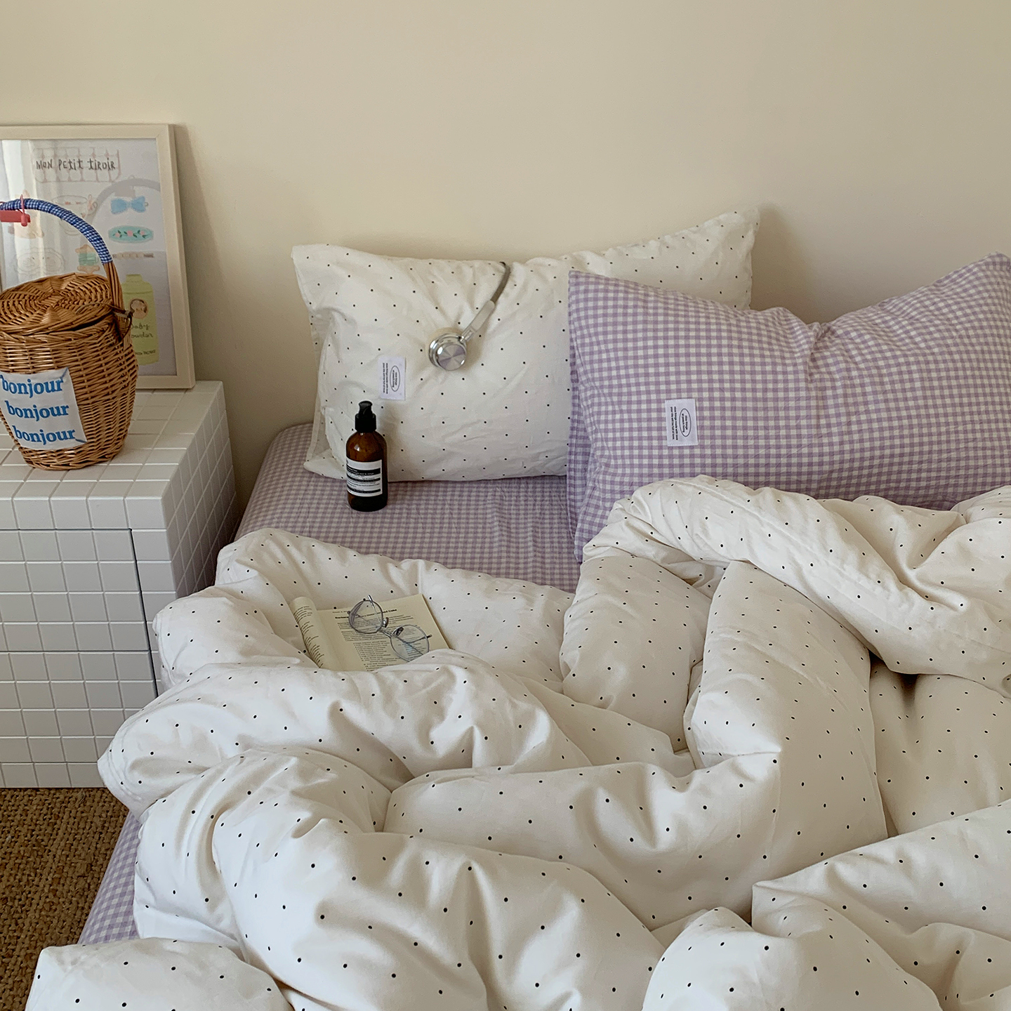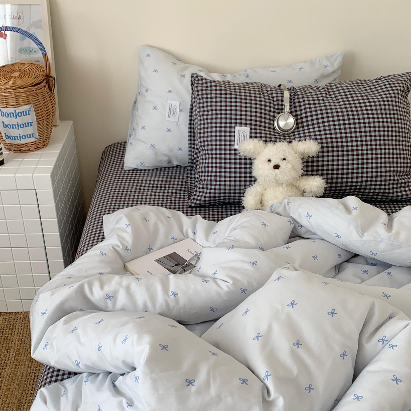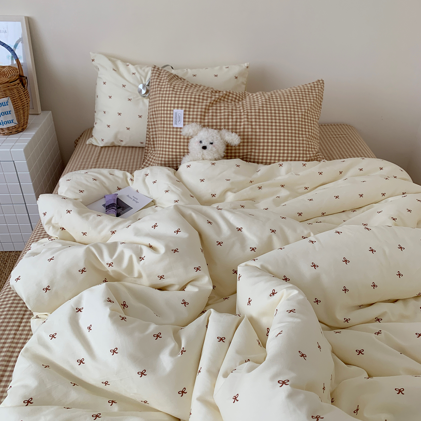 (总)桃喜 2026新款全棉水洗棉ins博主风四件套,黑粉波点,奶咖蝴蝶结,雾蓝蝴蝶结,芋泥波点,芋泥樱桃