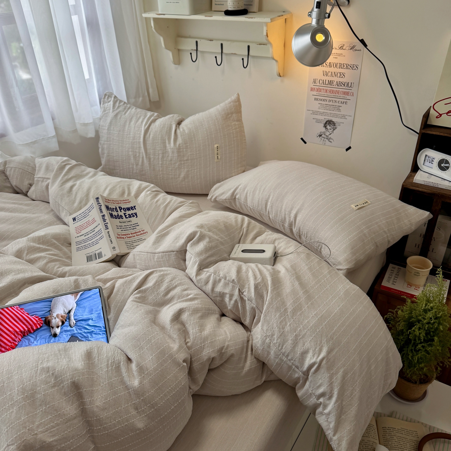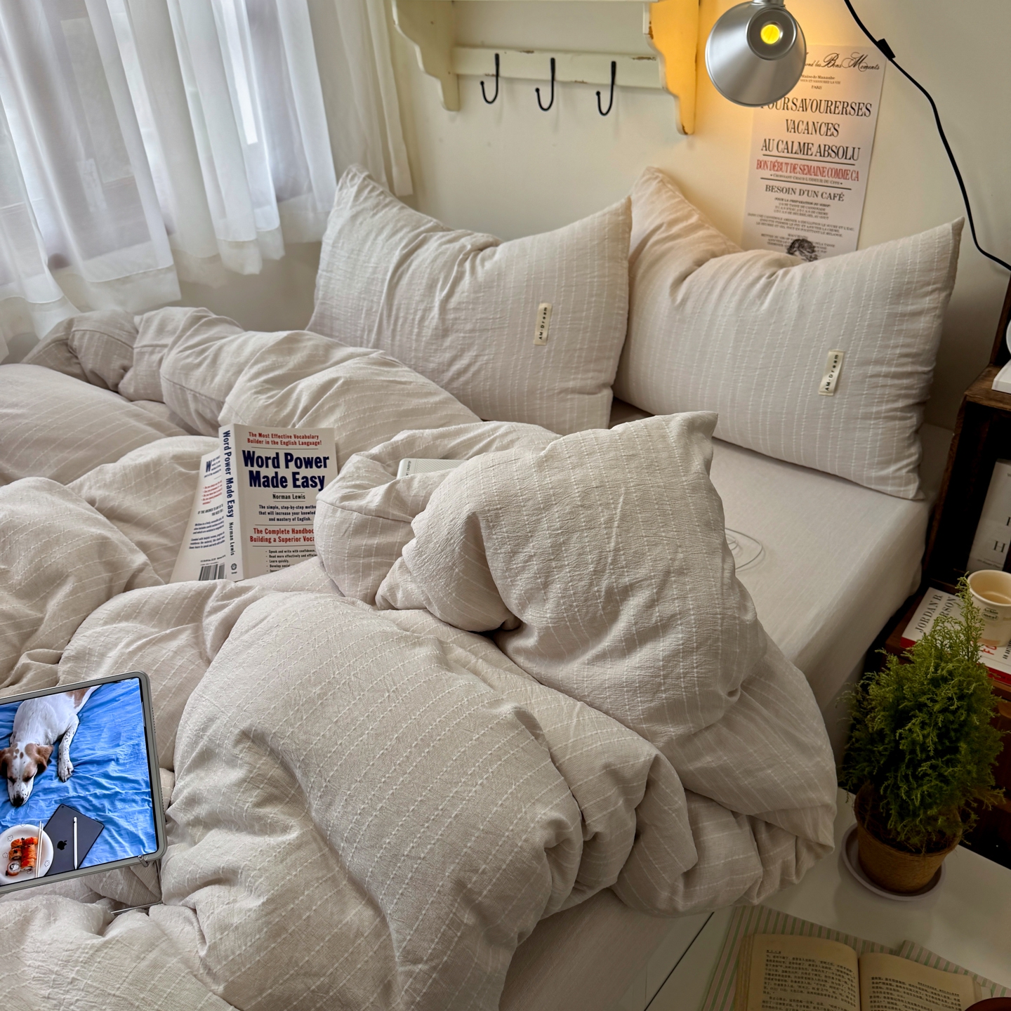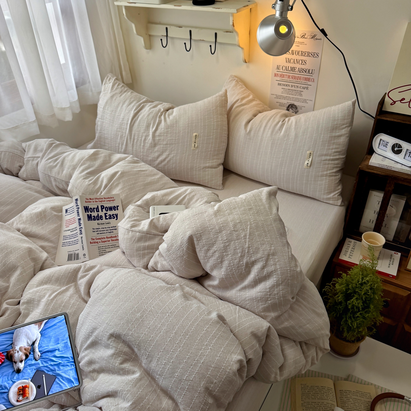 当前位置: 91家纺网 > 商品网购 > 床品套件 > 四件套 > 全棉普通四件套 > 艾特你 2026新款亚麻风纯色无印四件套 卡其
