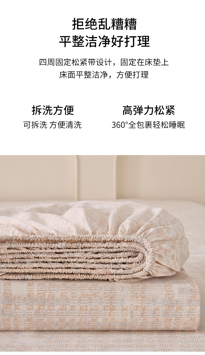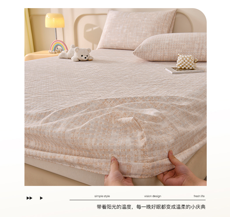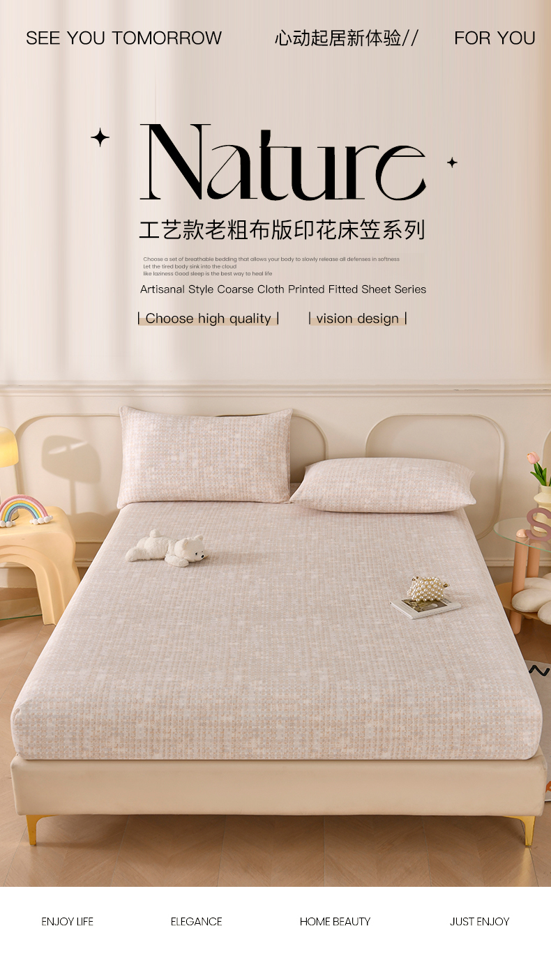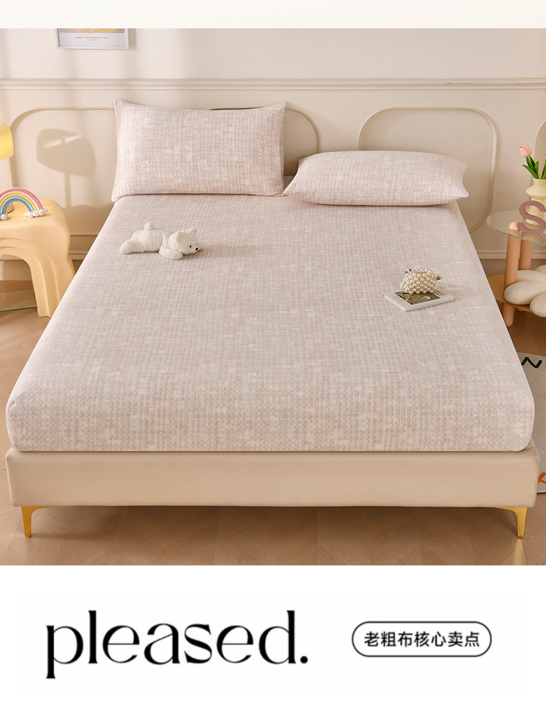 • 91家纺网 家纺一手货源 找家纺 悠米悠家 2026新款工艺款印花老粗布床笠单品床笠床笠单件凉席席子 浅咖肌理格