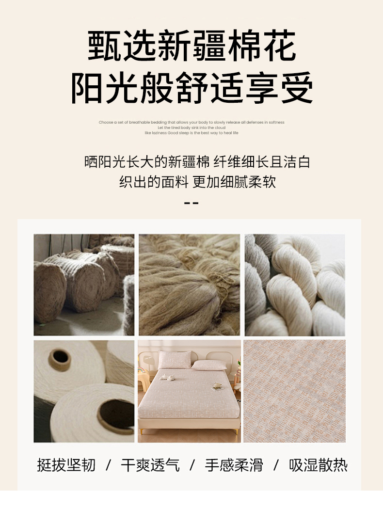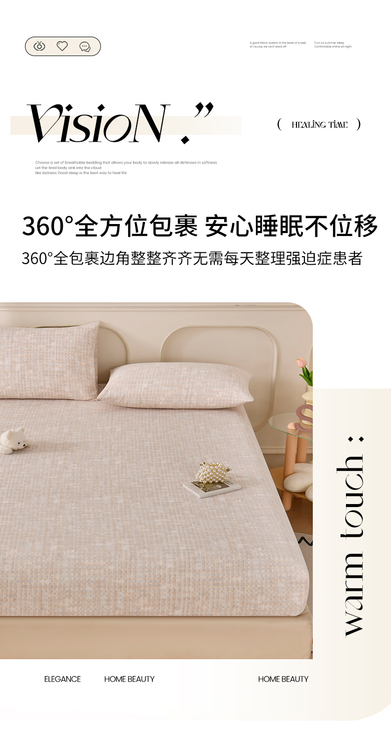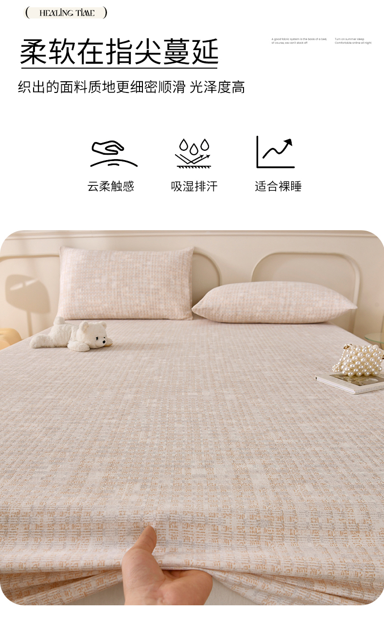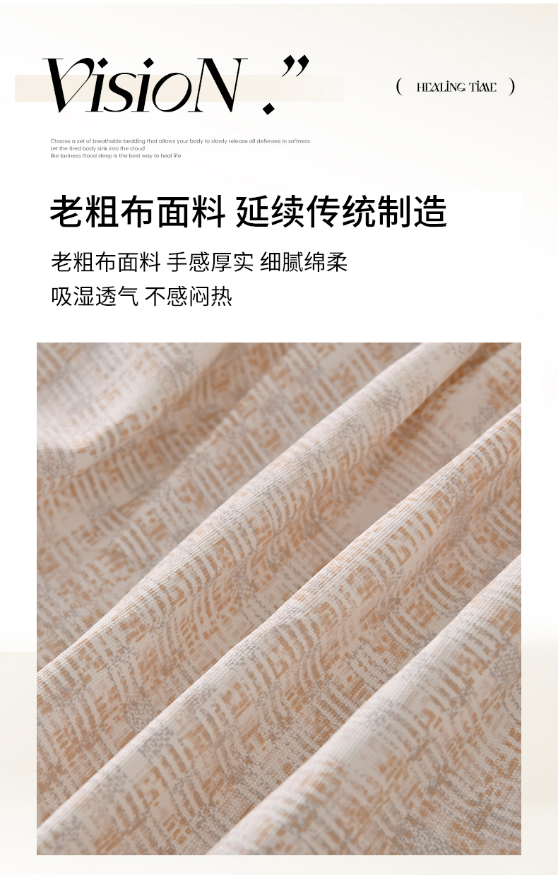 • 91家纺网 家纺一手货源 找家纺 悠米悠家 2026新款工艺款印花老粗布床笠单品床笠床笠单件凉席席子 浅咖肌理格