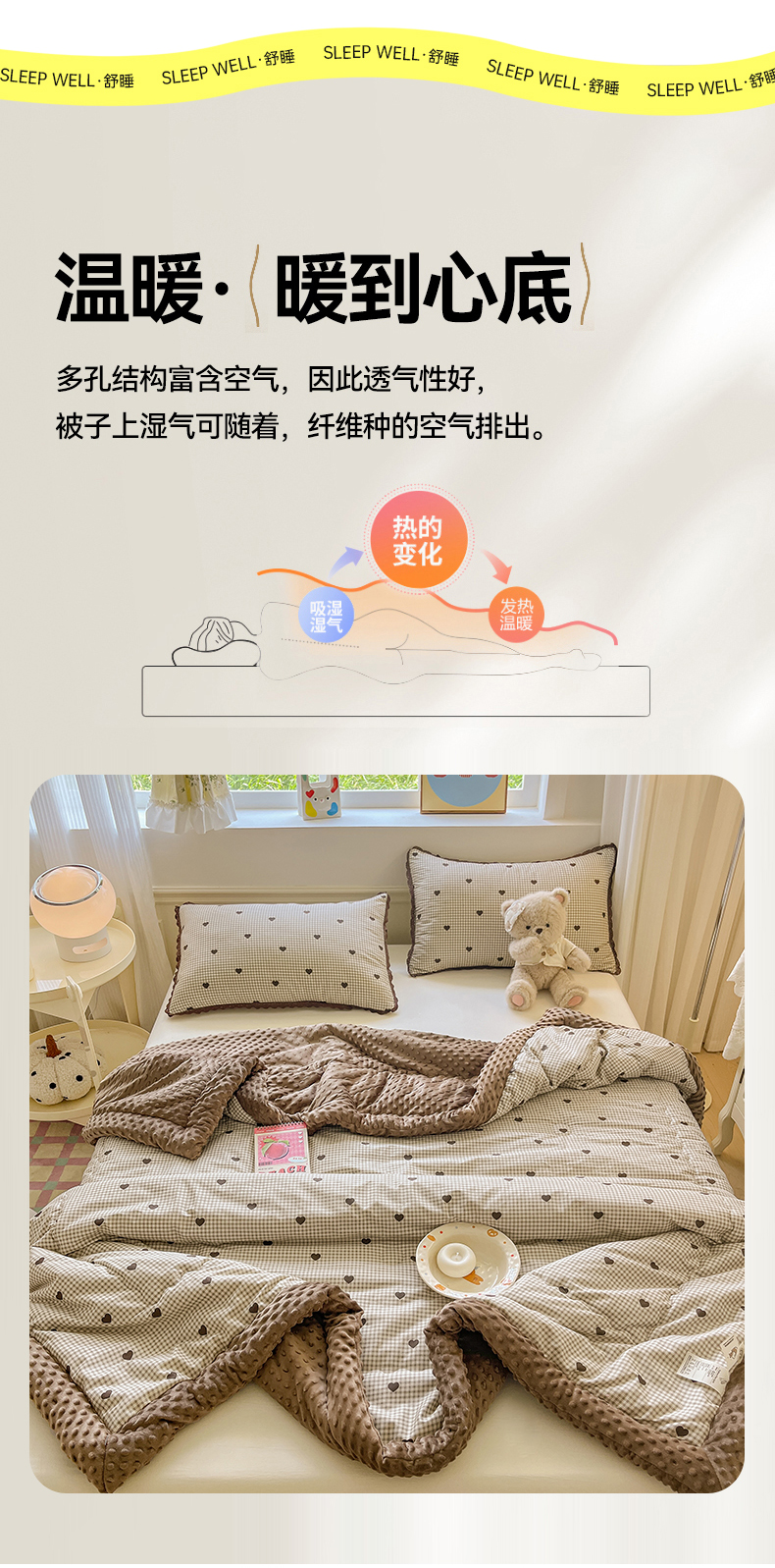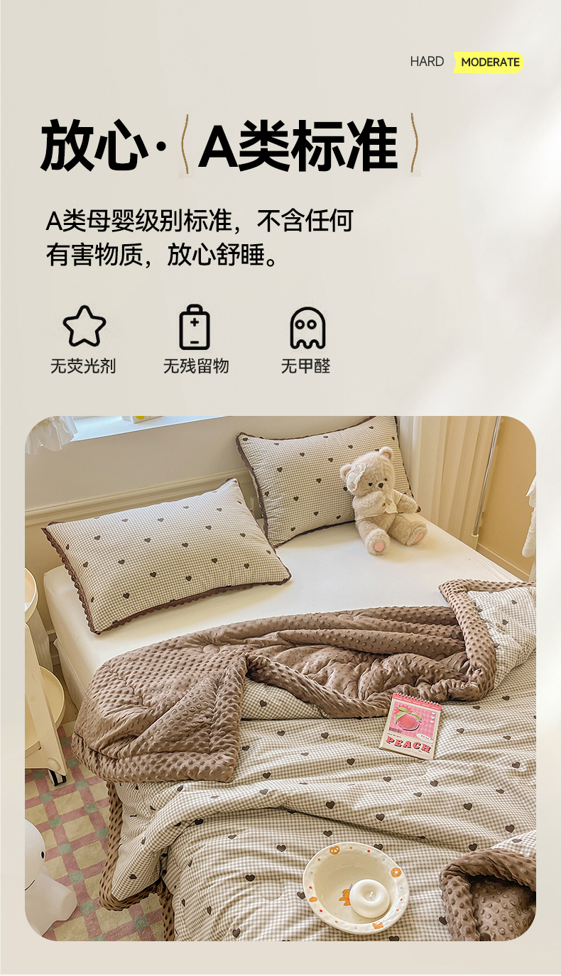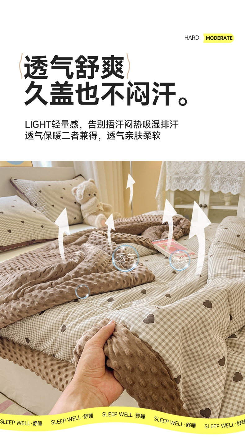 • 91家纺网 家纺一手货源 找家纺 梦依依 2026新款柔软舒适A类全棉豆豆被夏被春秋被子被芯 守护爱心