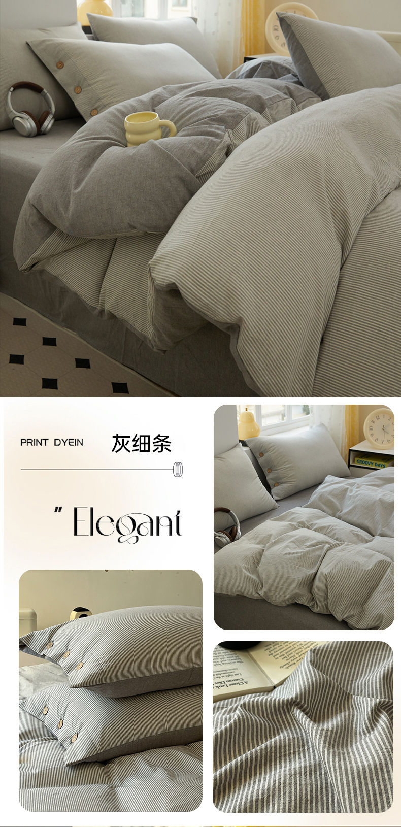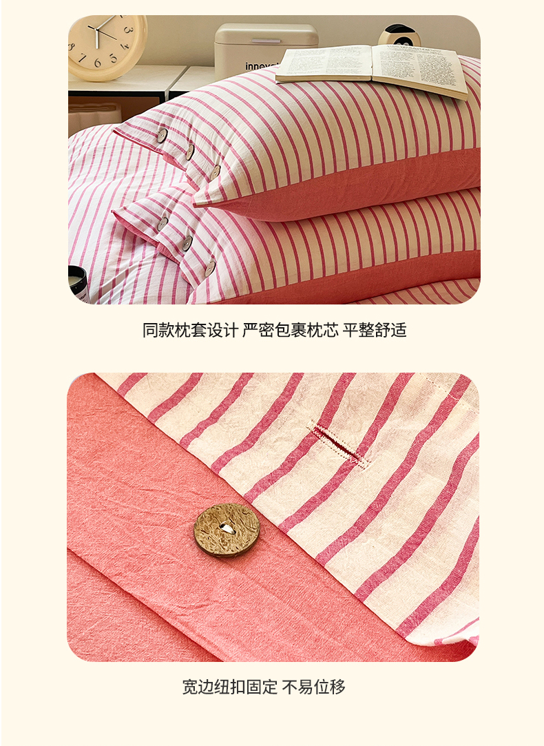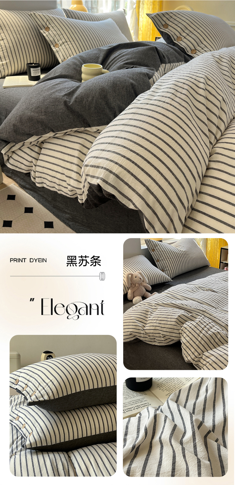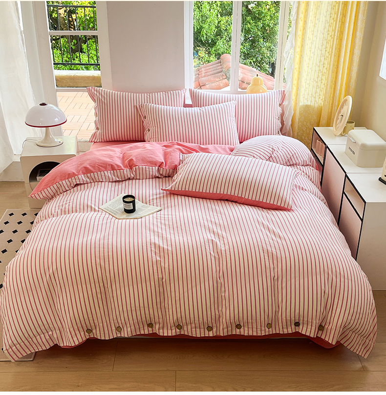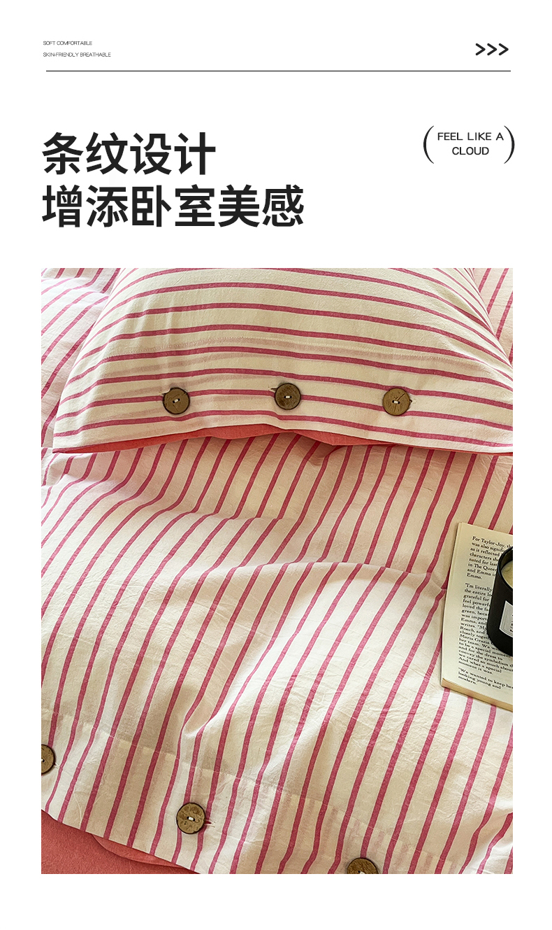 (总)梦依依 2025新款全棉色织水洗棉纽扣款四件套学生三件套全棉纯棉三件套,粉苏条,黑苏条,蓝苏条,绿苏条,米细条,黑细条,灰细条