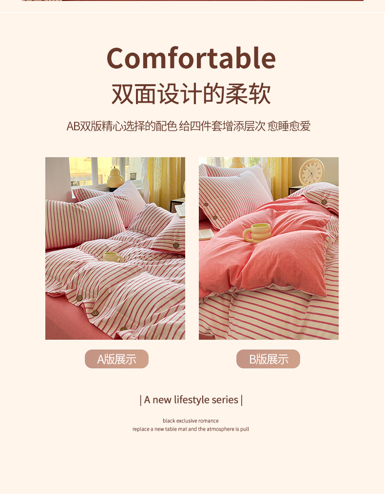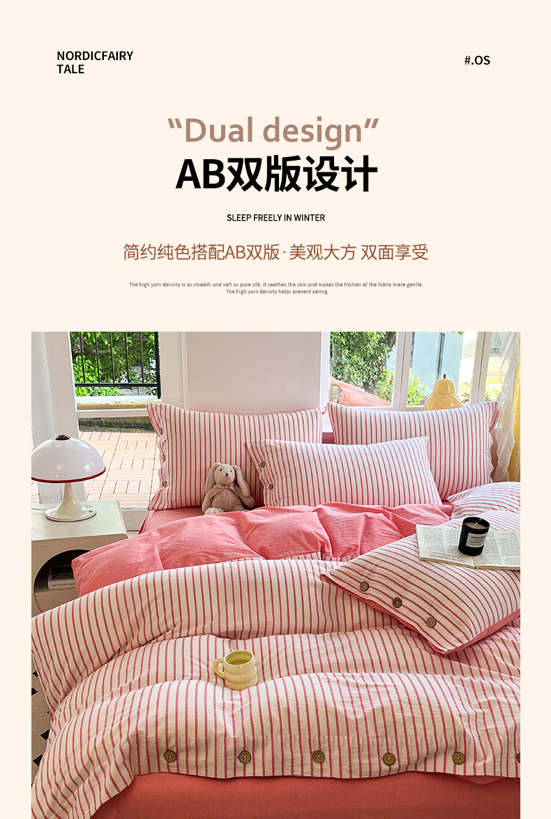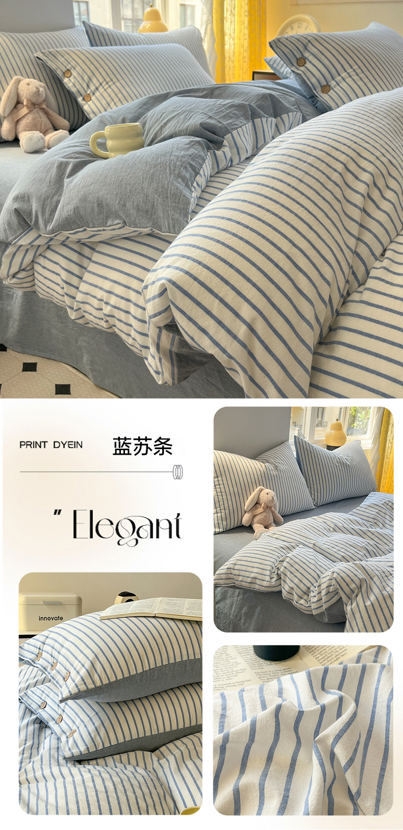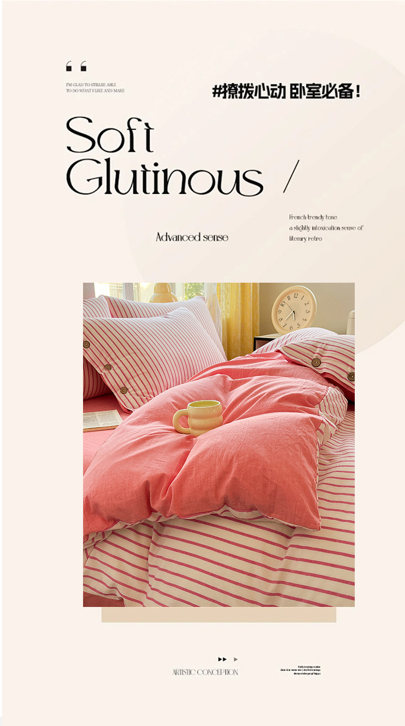 (总)梦依依 2025新款全棉色织水洗棉纽扣款四件套学生三件套全棉纯棉三件套,粉苏条,黑苏条,蓝苏条,绿苏条,米细条,黑细条,灰细条