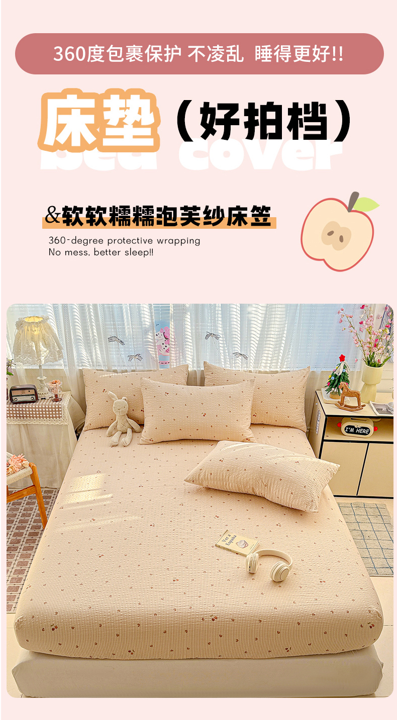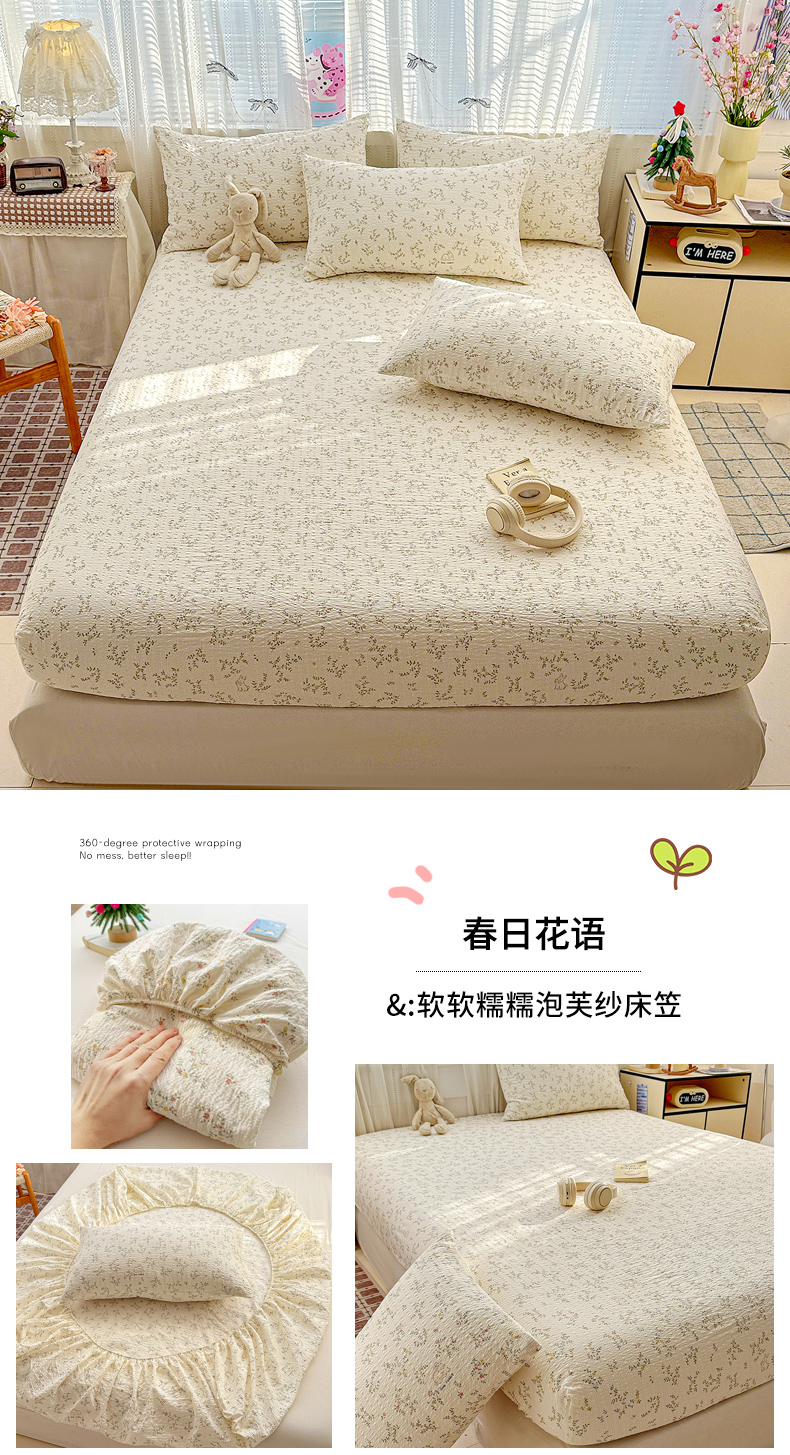 N先生+V 13814689556 发大图/买家秀 2026春夏新款软糯糯泡芙纱单床笠 床笠单件 可可甜心(床笠)