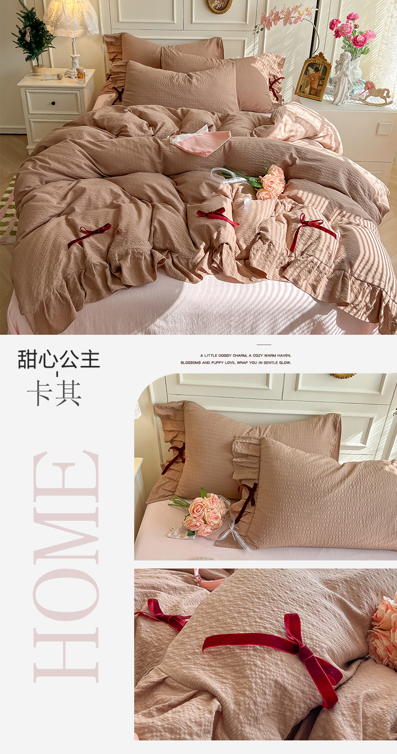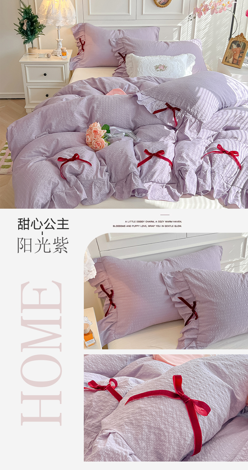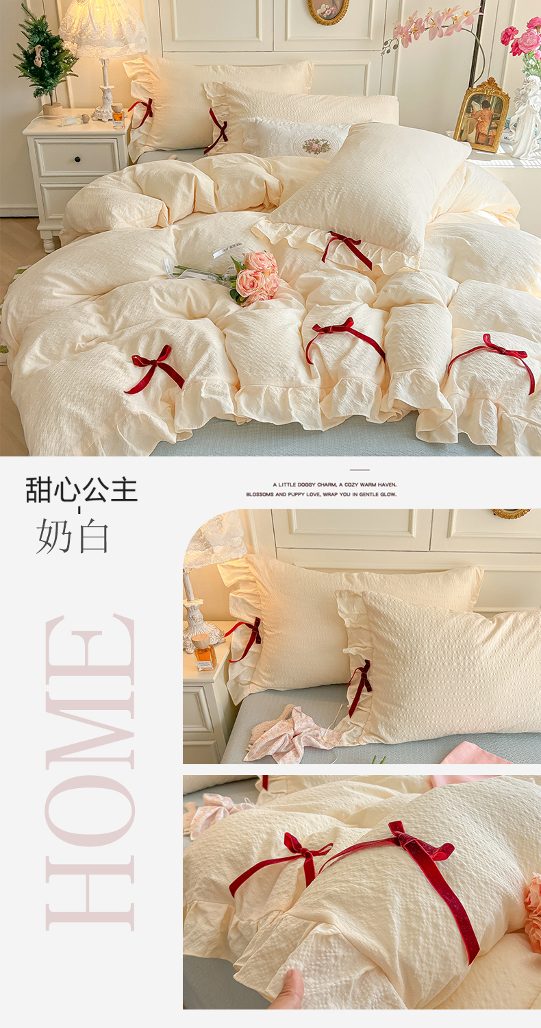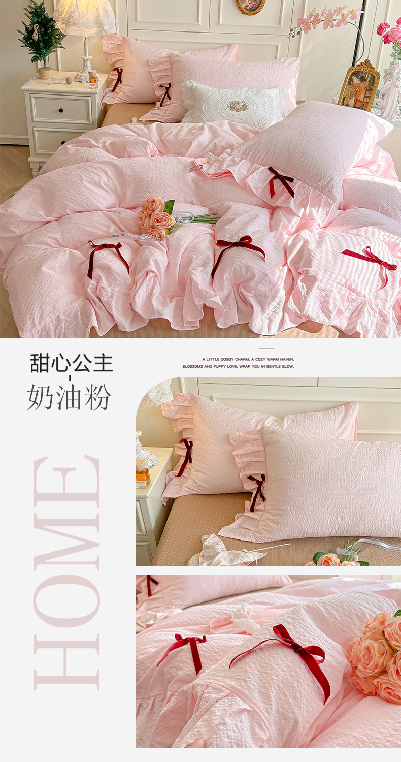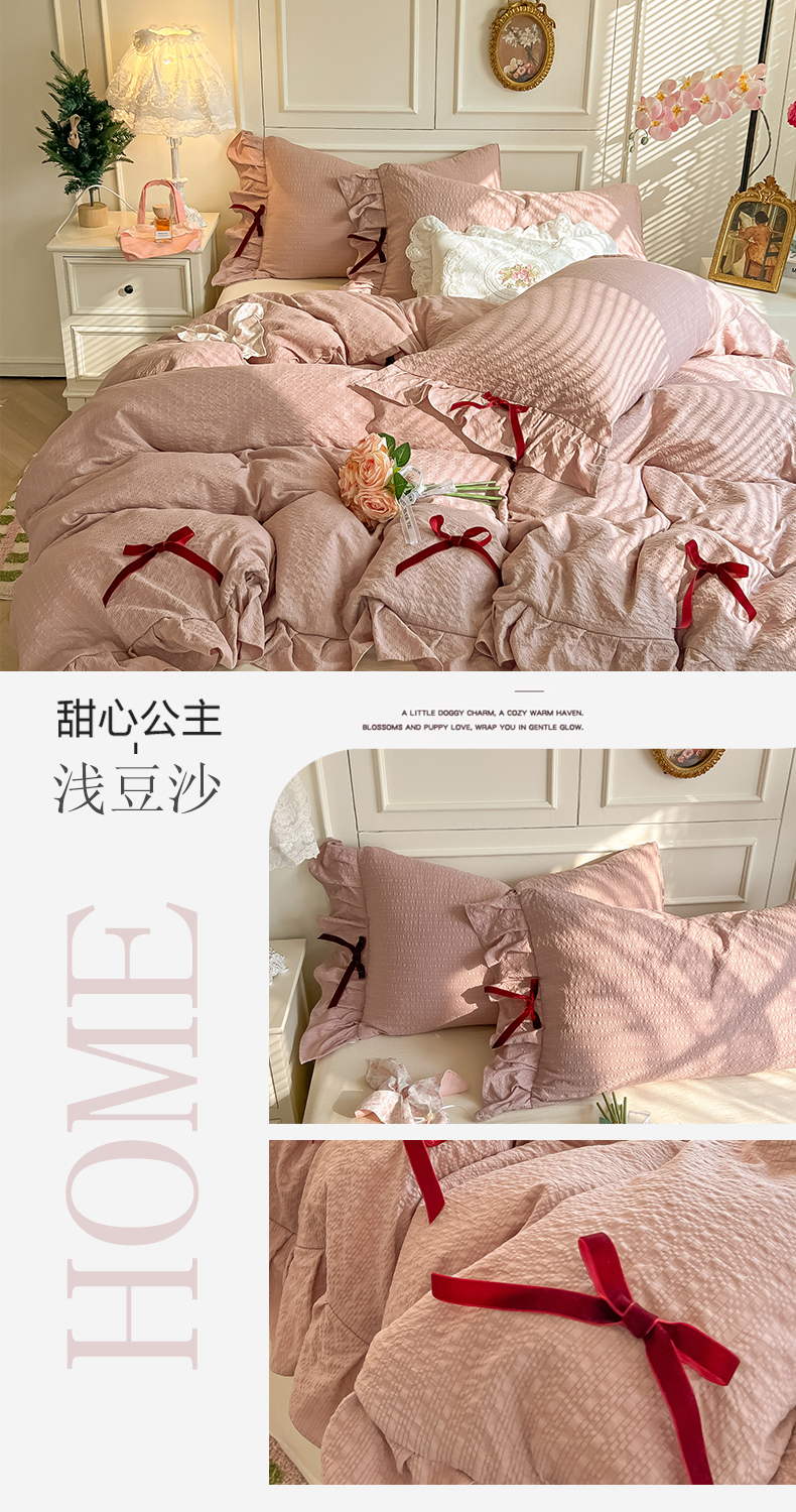 (总)子钦家纺 2026春夏新款提花泡芙棉花边蝴蝶结床单床笠四件套-甜心公主