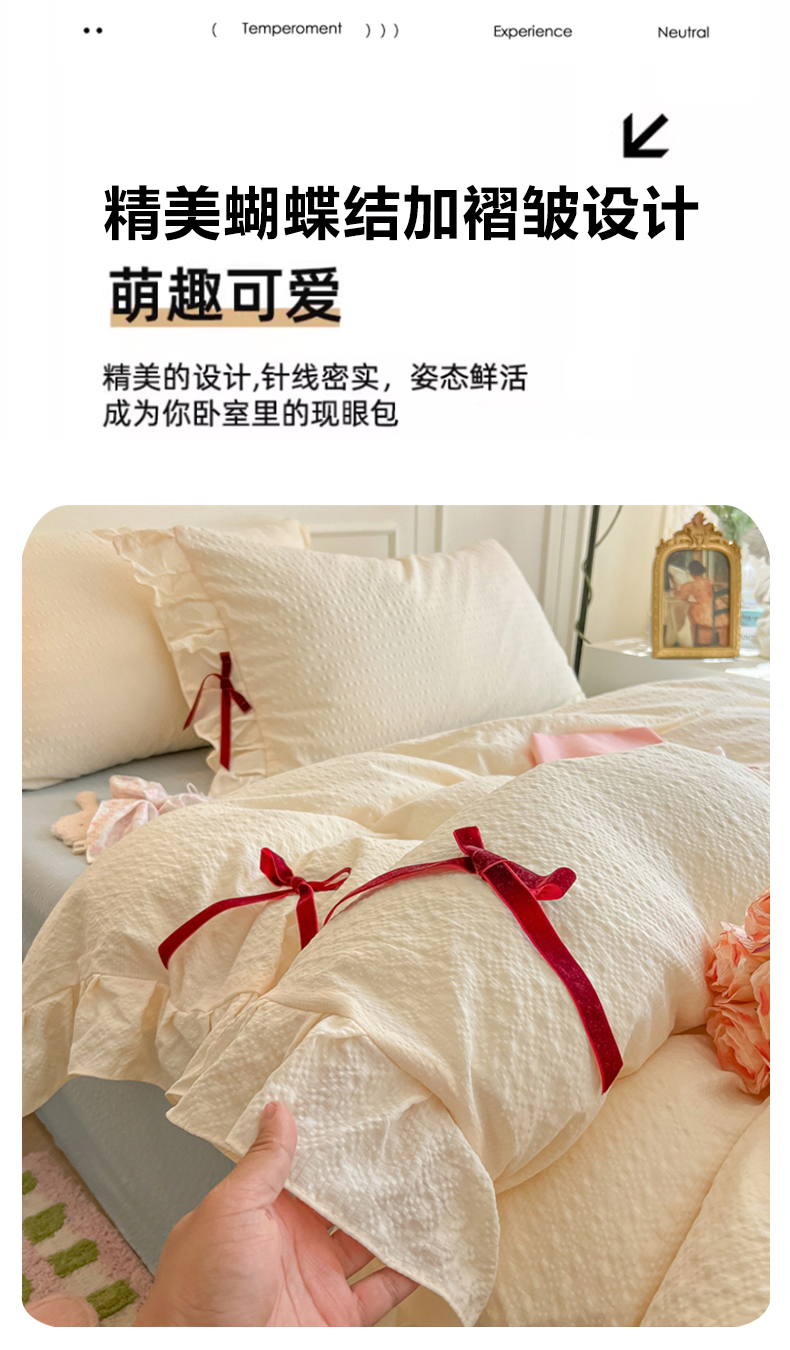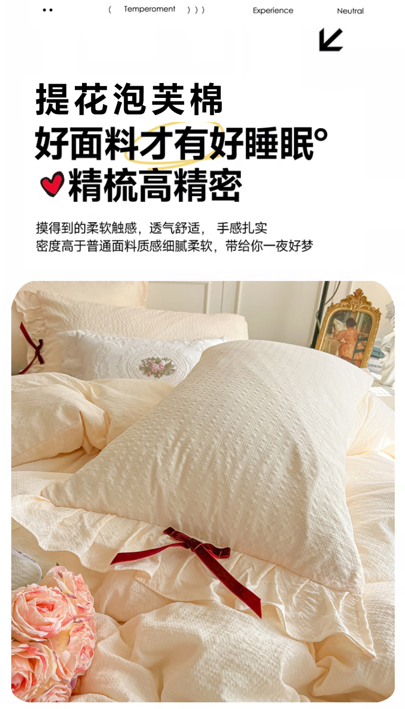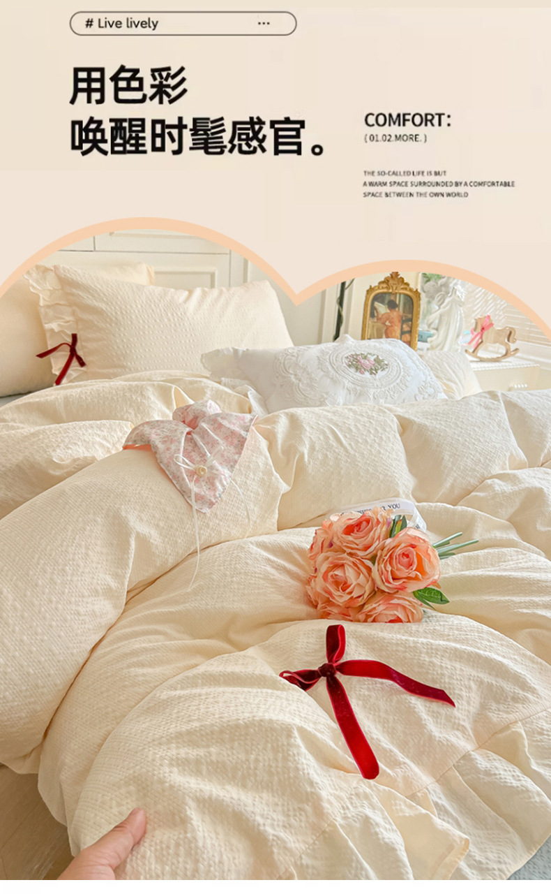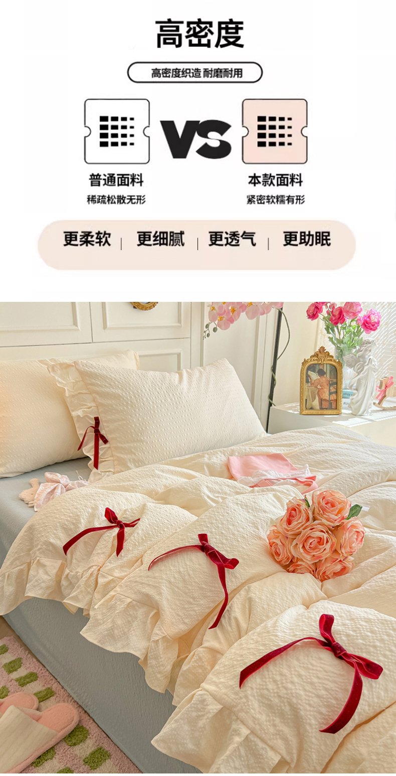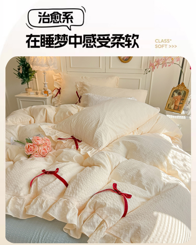 (总)子钦家纺 2026春夏新款提花泡芙棉花边蝴蝶结床单床笠四件套-甜心公主