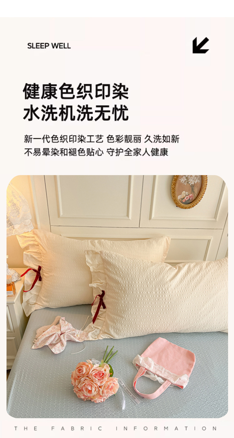 商品名称:(总)子钦家纺 2026春夏新款提花泡芙棉花边蝴蝶结床单床笠四件套-甜心公主