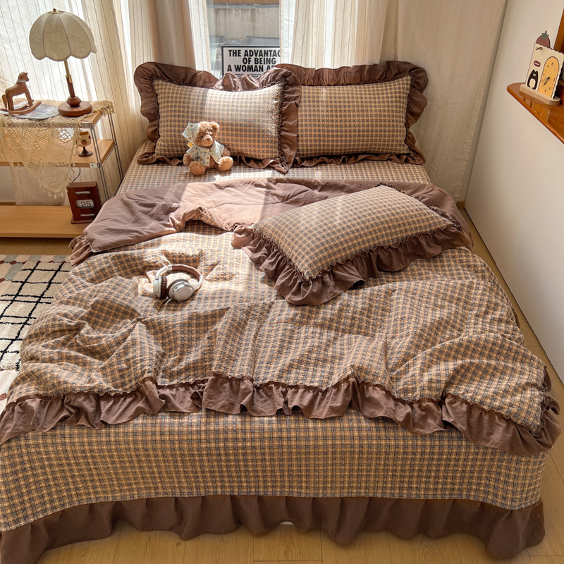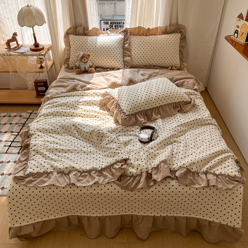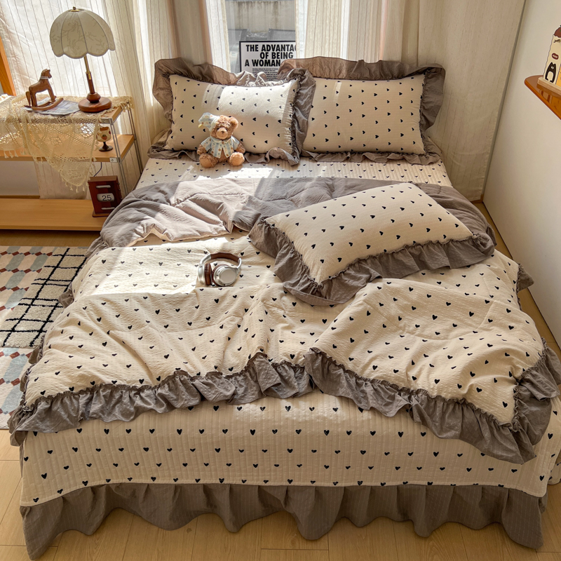 (总)2026新款泡芙纱床盖四件套,咖啡小猫,咖爱心,咖豹纹,小女孩,摇摇马,星愿,暖心,暖橘枝,梦境,梨花落,波点,甜甜兔,紫苏,花束,花花,蝶舞
