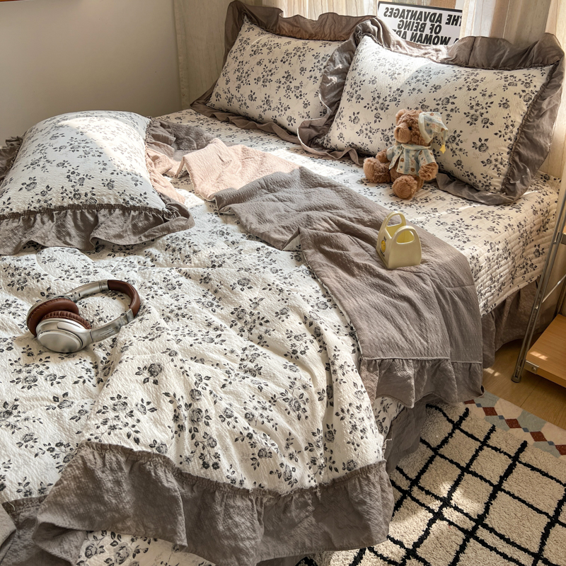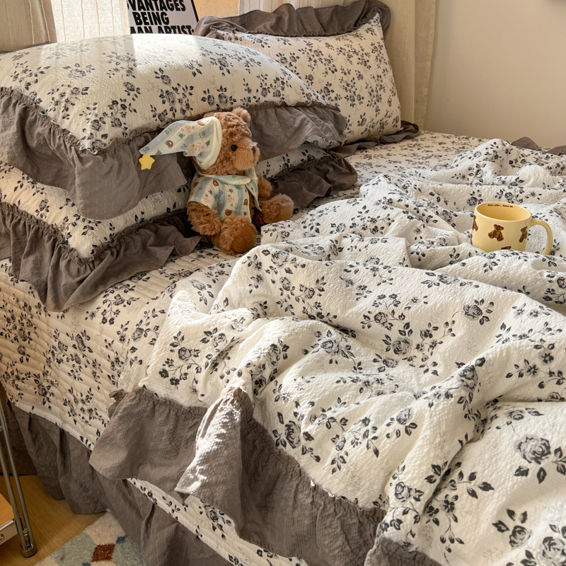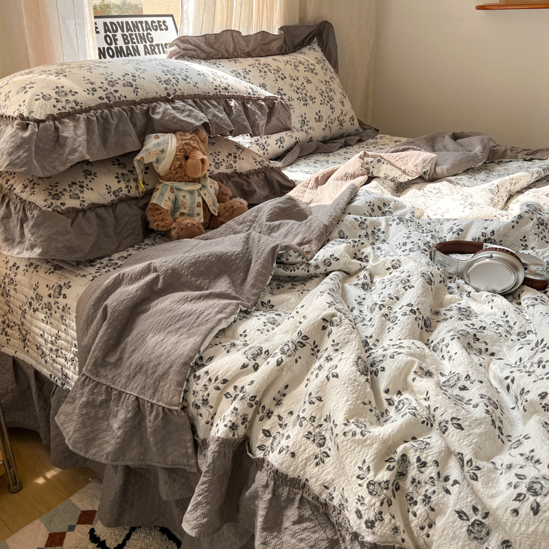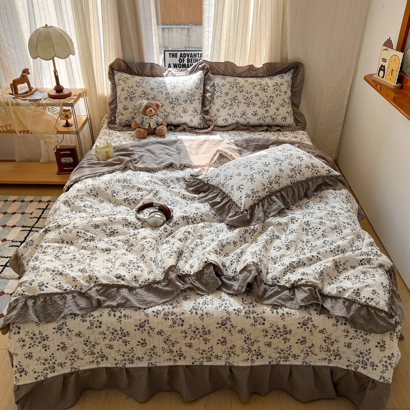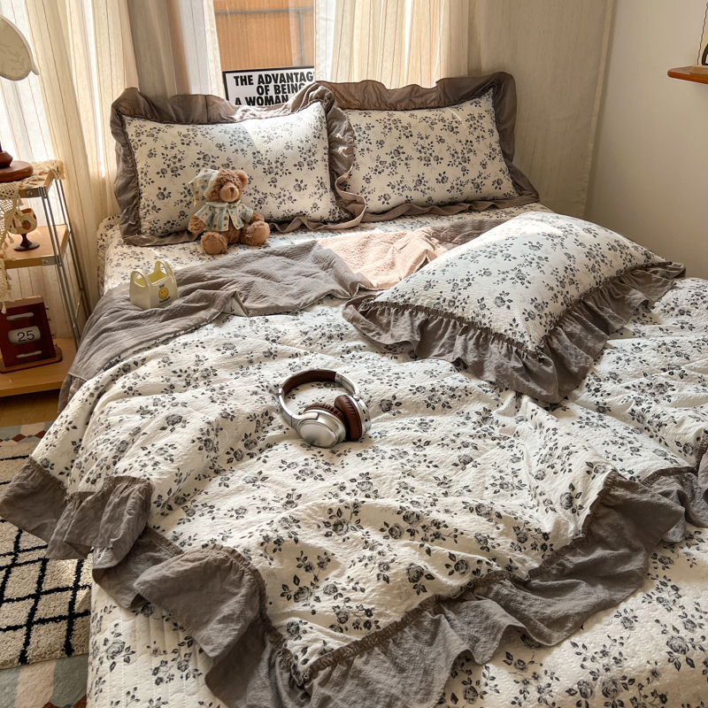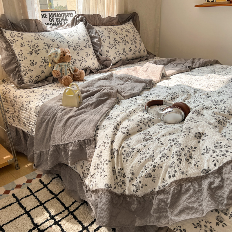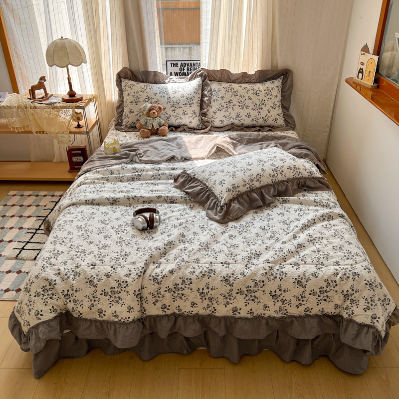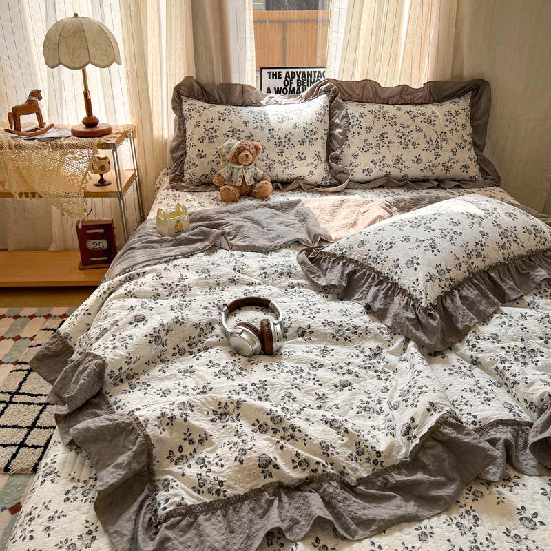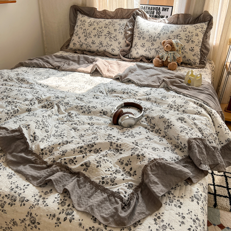 欧尚 2026新款床盖款花边夏被四件套 只闻花香